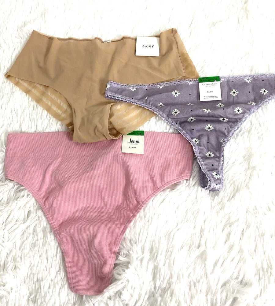Bundle 3 Modern Mesh Underwear Thong Brief Panties Size L Floral Pink Purple Jenni Charter club DKNY stretch bundle include 2 thongs 1 underwear please see pictures for more details