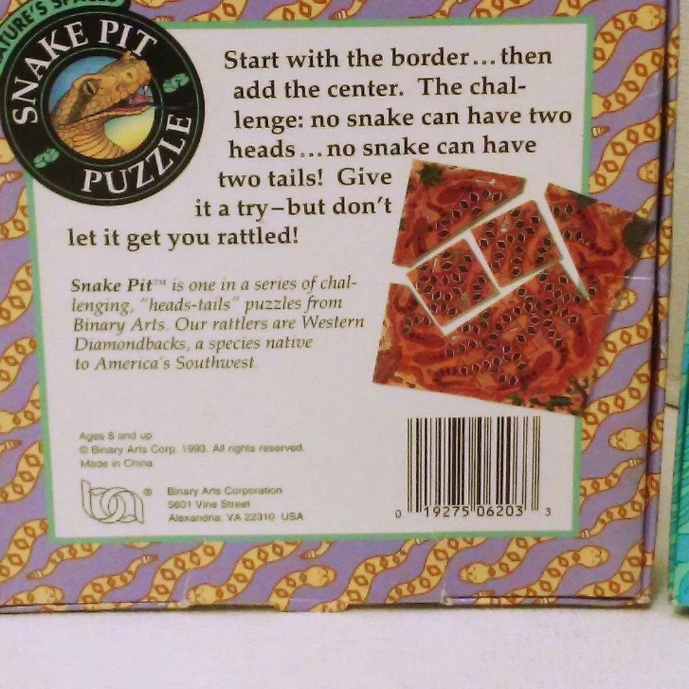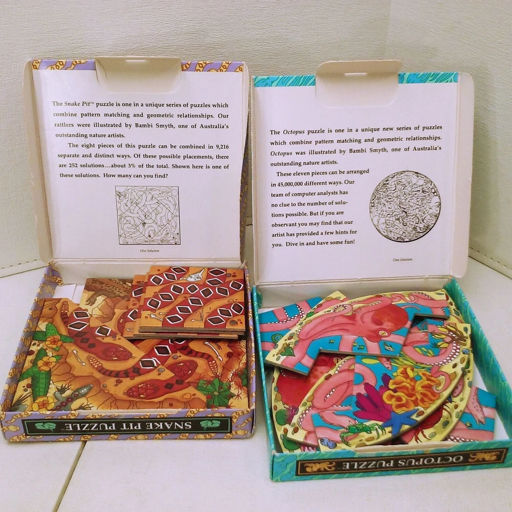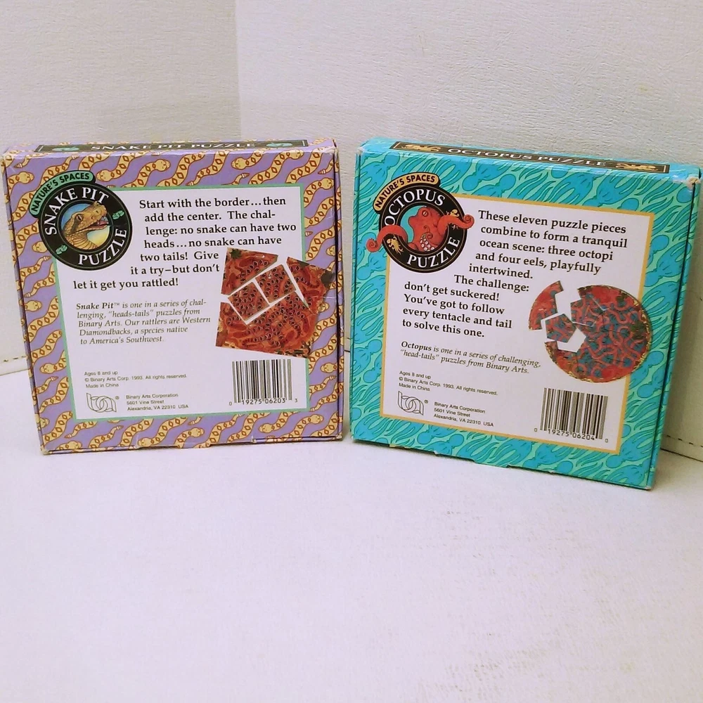Vintage Contemporary Traditional Game Puzzle Toy | --Bundle Lot-two (2) Nature's Spaces, Snake Pit + Octopus Puzzles, Binary Arts USA, Bambi Symth 1993 Ages 8+ with 1000's of solutions In pre-owned* condition, appears used, functional, complete with no visible flaws and general wear to include: dings/blemish to outer box - see pics for details. Novelty, Interactive Family, Manufactured, Multi-players, Table CardBoard, Hobby, Collectible, Home & Family, Children Youth, Memory, Brain Teaser, Fun Games, Mystery, Strategy, Relaxation, i#msn3209 Weight: 8- oz Condition: Items are quality pre-owned*, gently loved items with unique finishes and details. Any outwardly visible flaws will be noted - refer to photos as part of description. SHIPPING: I gift package securely with wrap, padded mailers, and boxes. Shipped USPS Priority Mail or First class, depending on weight and destination of item.