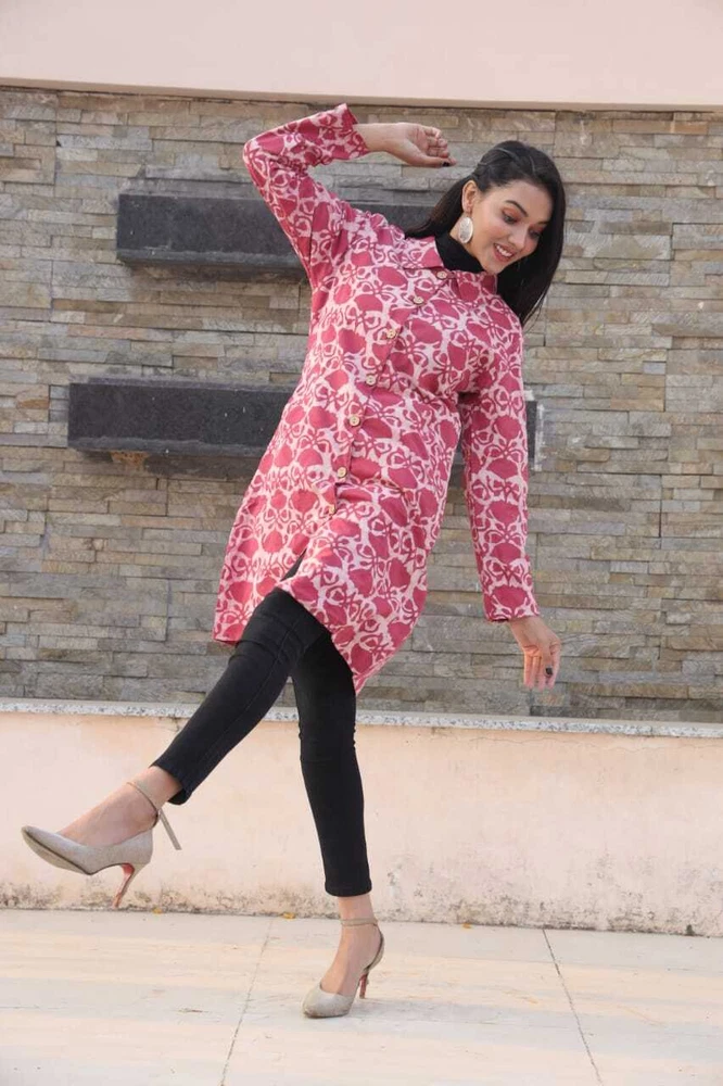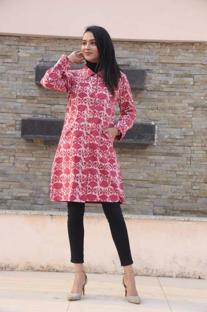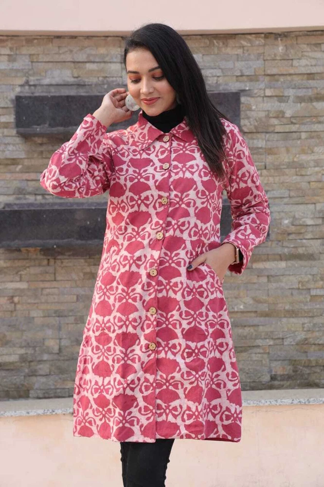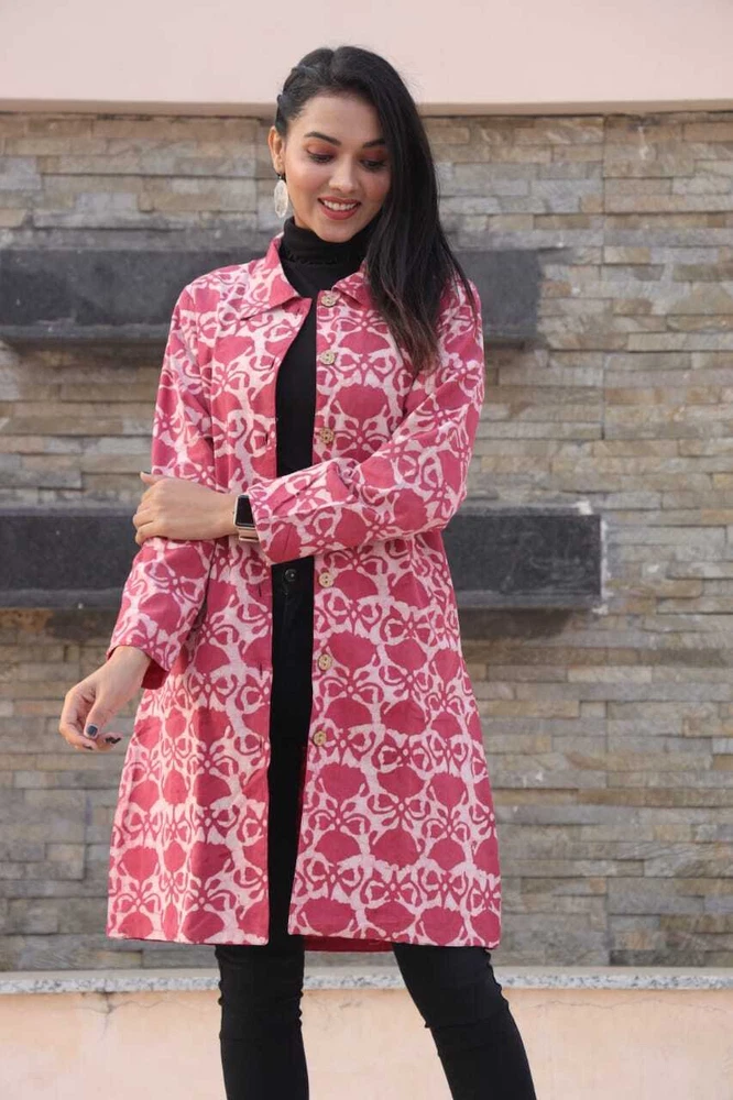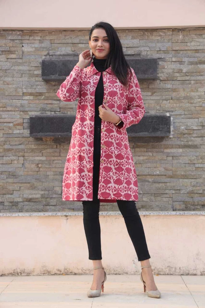 Bundle Up in Chic Long Winter Jackets for Girls/Women's Perfect for Any Occasion - 2 Layer with Two Pockets in Beautiful Colour's Elevate your winter wardrobe with this stunning handmade reversible jackets for women's & Girls. The outer shell is made of soft cotton in a beautiful pink stripe/floral pattern, while the lining is crafted from hand printed cotton, adding a unique touch to this piece. The long coat length and long sleeves of Women jackets provides warmth during the colder months, making it perfect for any occasion, from casual to formal. This quilted jacket features a button closure and pockets, and is made with 3 layers of lightweight organic cotton, providing insulation without adding unnecessary bulk. The jacket is perfect for all seasons, and its versatility is emphasized by the fact that it can be personalized, making it even more special. Made in India, this jacket is perfect for those who value art and culture, and its theme options, including festive season and hippie, make it a great addition to any wardrobe. Fabric Cotton 60×60 cambric ( Super Quality)\ Inner Side Fabric - Cotton Flex. Measurements ladies Jacket Size Bust Size ( S) - 38 Size (M) - 40 Size (L) - 42 Size (XL) - 44 Size (XXL) - 46 Note- All above Sizes of *Brust. Jacket Length- 36-37 All Sizes in *Inches.