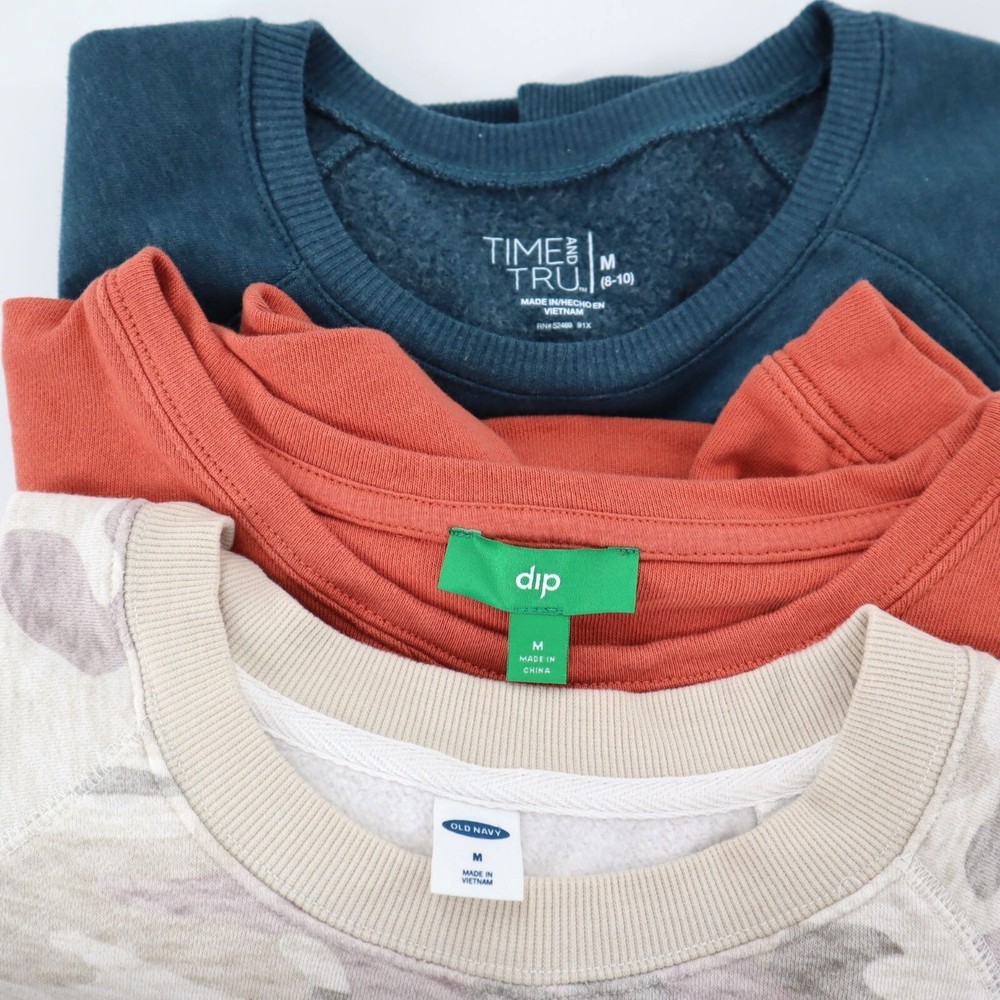Pullover Sweatshirts Bundle Of 3 Women's M Comfy Cozy Loungewear Athleisure Warm Get ready to embrace the ultimate comfort trio: these sweatshirts are like a hug in clothing form. Whether you're planning a Netflix marathon, indulging in a snack attack, or just avoiding doing laundry for one more day, these soft sweatshirts have got you covered. • Crewneck design • Medium size • Long sleeves • Soft fabric Features: • comfy, cozy, loungewear, athleisure, around the house, soft, warm, everyday, casual Size: Womens M Approximate Measurements: Camo Length from center back 22 in / 56 cm Camo Bust, flat lay 21 in / 53 cm Camo Sleeve from neckline 27.5 in / 70 cm Orange Length from center back 21 in / 53 cm Orange Bust, flat lay 21 in / 53 cm Orange Sleeve from neckline 25 in / 64 cm Blue Length from center back 23.5 in / 60 cm Blue Bust, flat lay 20.5 in / 52 cm Blue Sleeve from neckline 27 in / 69 cm Condition: Pre-Owned Good Gently used with no major flaws. The camo and blue sweatshirt have a soft and fuzzier inner side.