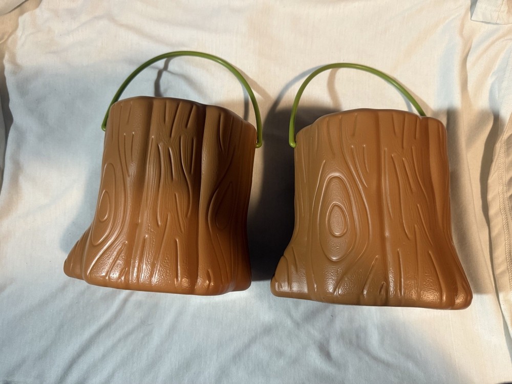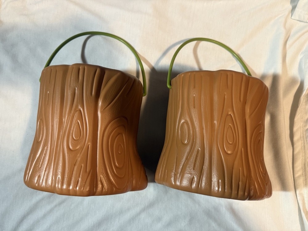 This product is a set of 3 small plastic tree stump buckets from Target's Bullseye collection, featuring a brown color and a matte finish. Measuring 7 inches in length and 7.5 inches in height, these figurines are designed for easy care and are not microwave safe or dishwasher safe. Perfect for cozy fall movie nights, or big bonfires while you cuddle with your loved ones.