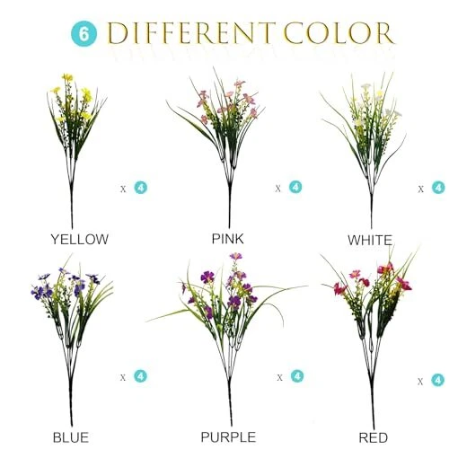 Return Policy Fast Delivery Trusted seller 24 Bundles Fake Outdoor Wild Flowers Lifelike UV Resistant Mixed Colors Artificial Flowers for Indoor Outside Hanging Planters Garden Home Office Decor Product Description PACKAGE: The package includes 24 bundles fake daisy flowers mixed with 6 different colors, you can use the artificial flower by each color individually or mixed them in bunches HIGH QUALITY: High quality silk material daisy platsic flowers and grass makes them look more realistic. the uv resistant faux flowers outdoor plants can withstand various weather conditions and is designed to last for years LOW MAINTENANCE: these artificial flowers are no watering or sunlight needed, just fluff the stems and enjoy the lovely faux colorful flowers look for outdoor planters, without the hassle of a real plant that needs care MULTIPLE APPLICATIONS: Beautiful artificial outdoor plants are suitable for home, garden, porch, patio, window box, indoor and outside decorations, also can decorate your wedding, party or any event for a lovely floral bouquet accent WHY CHOCIE: still struggling with real flower daily maintenance?try this fake flowers mixed with 6 colors for decoration, colorful flowers with green leaves, infuse natural beauty into your living spaces Shipping Returns Payment Shipping Shipping is FREE to all addresses other than APO/PO boxes in the lower 48 states. All our stock ships from US-based warehouses. Shipped via USPS or UPS (depending on location and package weight) Unless stated otherwise, all orders will ship within 24-72 hours of your payment being processed. Check our feedback to see the great reviews of FAST shipping we offer. Returns Seller does not accept returns Payment We currently accept payment via eBay managed payments only. Once payment is cleared, we will dispatch your shipment within 1-3 business days. Please refer to the "Shipping" tab for more information regarding shipping speed to your destination.