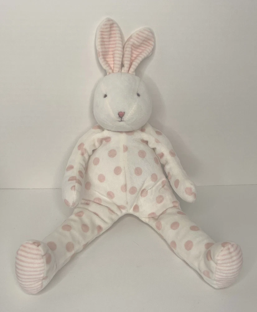 This adorable plush Bunny Rabbit Carrots is White with Pink Polka Dots is perfect for anyone looking for a soft cuddly toy. The retired plush toy from the Bunnies by the Bay brand is perfect for Easter celebrations, or just to have a cute plush toy to snuggle whenever you need one. This pink and white Bunny Rabbit plush toy is approximately 15" long from the tip of the ears to the bottom of her feet, making it a perfect size for anyone looking for something to hold. It is in very good condition. The color in the pictures is not 100% accurate due to lighting. Non-smoking household. Import duties, taxes and charges are not included in the item price or shipping charges. These charges are the buyer's responsibility. Please check with your country's customs office to determine what these additional costs will be prior to bidding/buying. These charges are normally collected by the delivering freight (shipping) company or when you pick the item up – do not confuse them for additional shipping charges. I do not mark merchandise values below winning bid amount or mark items as "gifts" - US and International government regulations prohibit this practice.