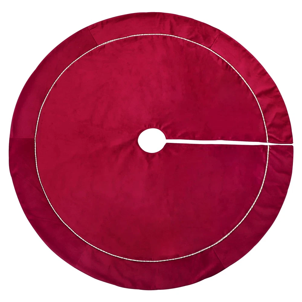 Features: ❖ Made of plush velvet fabric, soft comfortable and durable. ❖ Classic traditional red color matching. ❖ Tie at opening to secure tree skirt in place around Christmas tree. Specifications: ❖ Material: Polyester ❖Weight: 1.1 lb ❖ Size: 121cm / 48 inch full size ❖Style: Rustic. Traditional.Vintage. Recommended Usage: ❖ Perfect for any size tree from 5' small to 8' large trees. ❖ Go with traditionally decorated and whimsical artificial Christmas trees. ❖ DIY the tree skirt with Bunny Chorus Christmas DIY kit.(Please search ""Bunny Chorus Christmas DIY kit"") Package Includes: ❖ 1 x Red Plush Christmas Tree Skirt 【Perfect Size】The diameter of this Christmas tree skirt is 48 inches, it fits all Christmas tree sizes. Perfect for hiding tree stands, and you can put Christmas gifts on the tree skirt to add more festive vibes. 【Function】The 48 inch large tree skirt is one of the best tree decorations to hide the unsightly 'legs’ of the tree stand and any wires used to supply current to the tree lights. 【Vintage Design】The red tree skirt comes in an elegant and classic color, it looks rustic, simple and noble. Easily complement your Christmas tree decorations with this traditional tree skirt. 【Premium Fabric】 The xmas tree skirt is made of high-quality velvet fabric, which is soft and smooth to the touch. Under the lights of the Christmas tree, there will be a soft sheen. 【Application scene】: Holiday family Christmas tree party decoration, can be placed in the living room, bedroom, lobby, garden and other places. Can be reused many times.