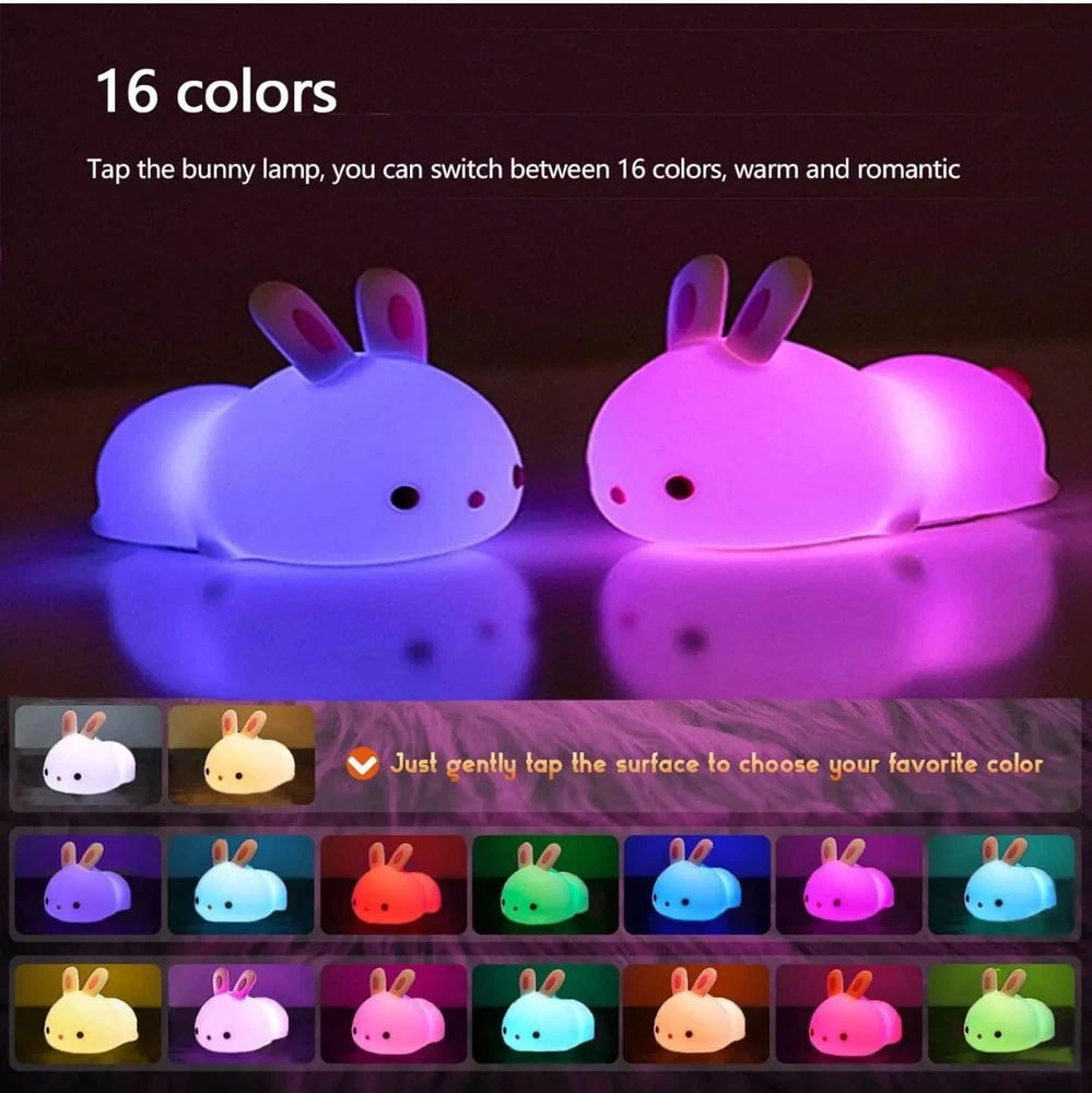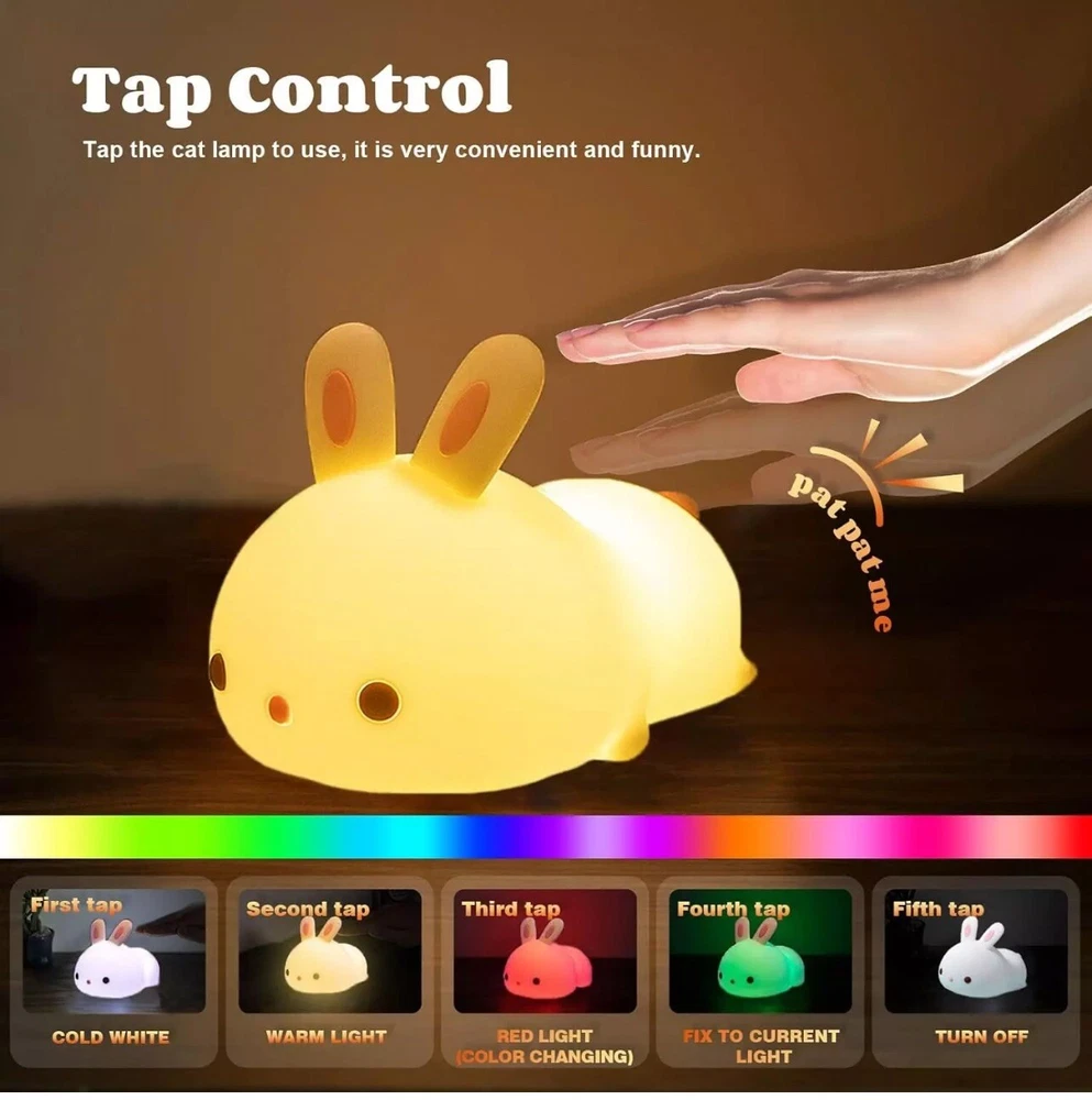 Bunny Night Light USB Rechargeable 16-Color LED Kids' Gifts Bunny-Tap Control