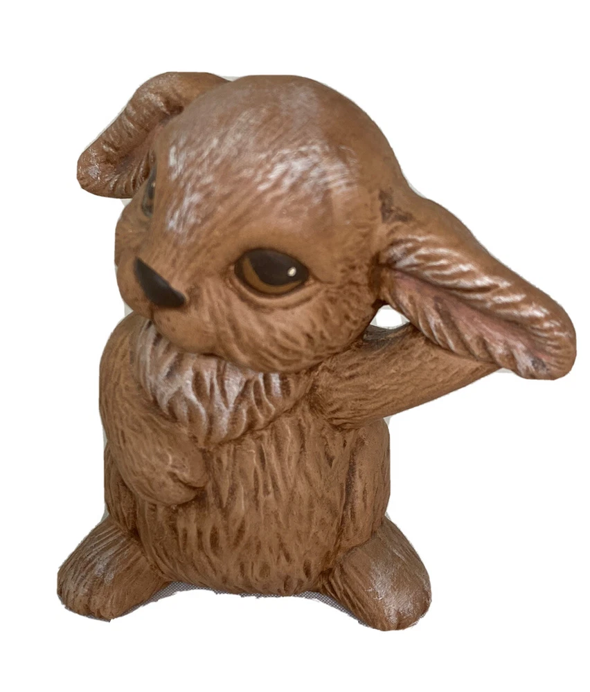 HomeBunny Rabbit Figurine Ceramic Mold Hand Painted Brown Easter Spring 3"