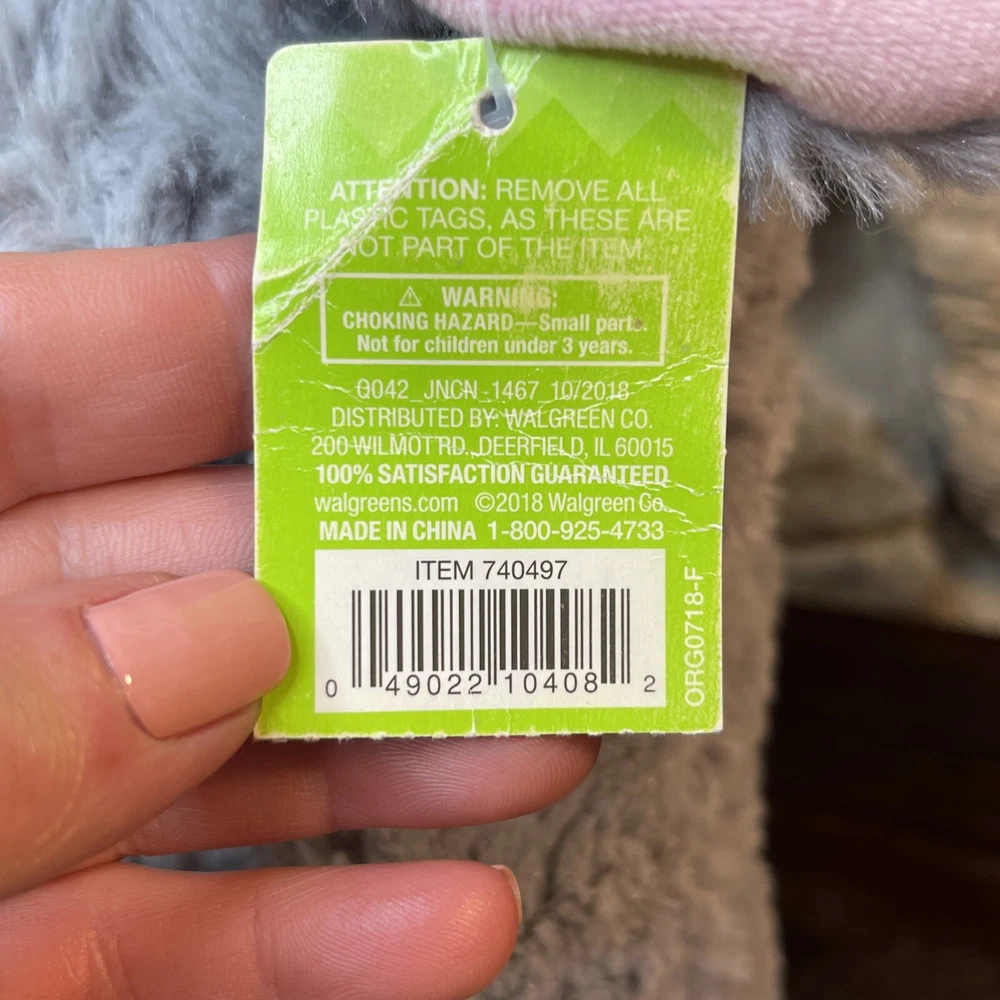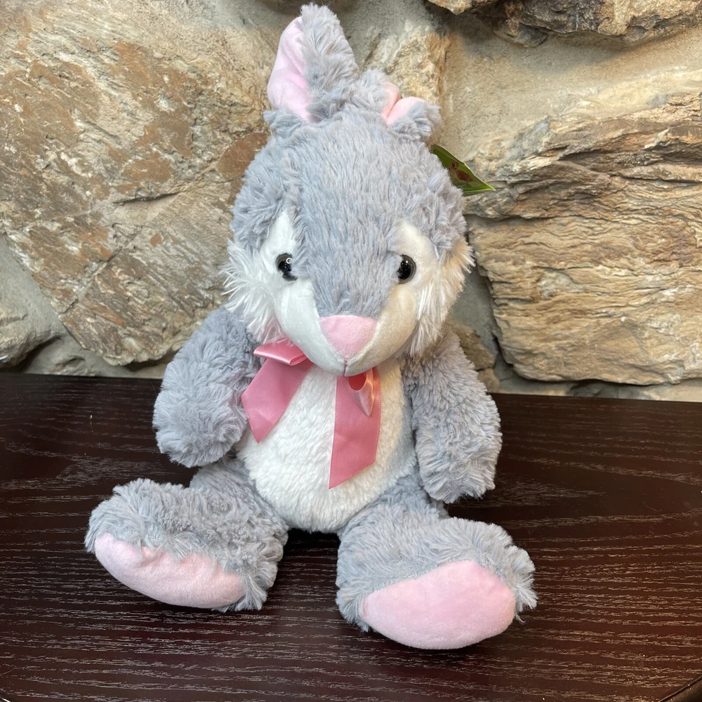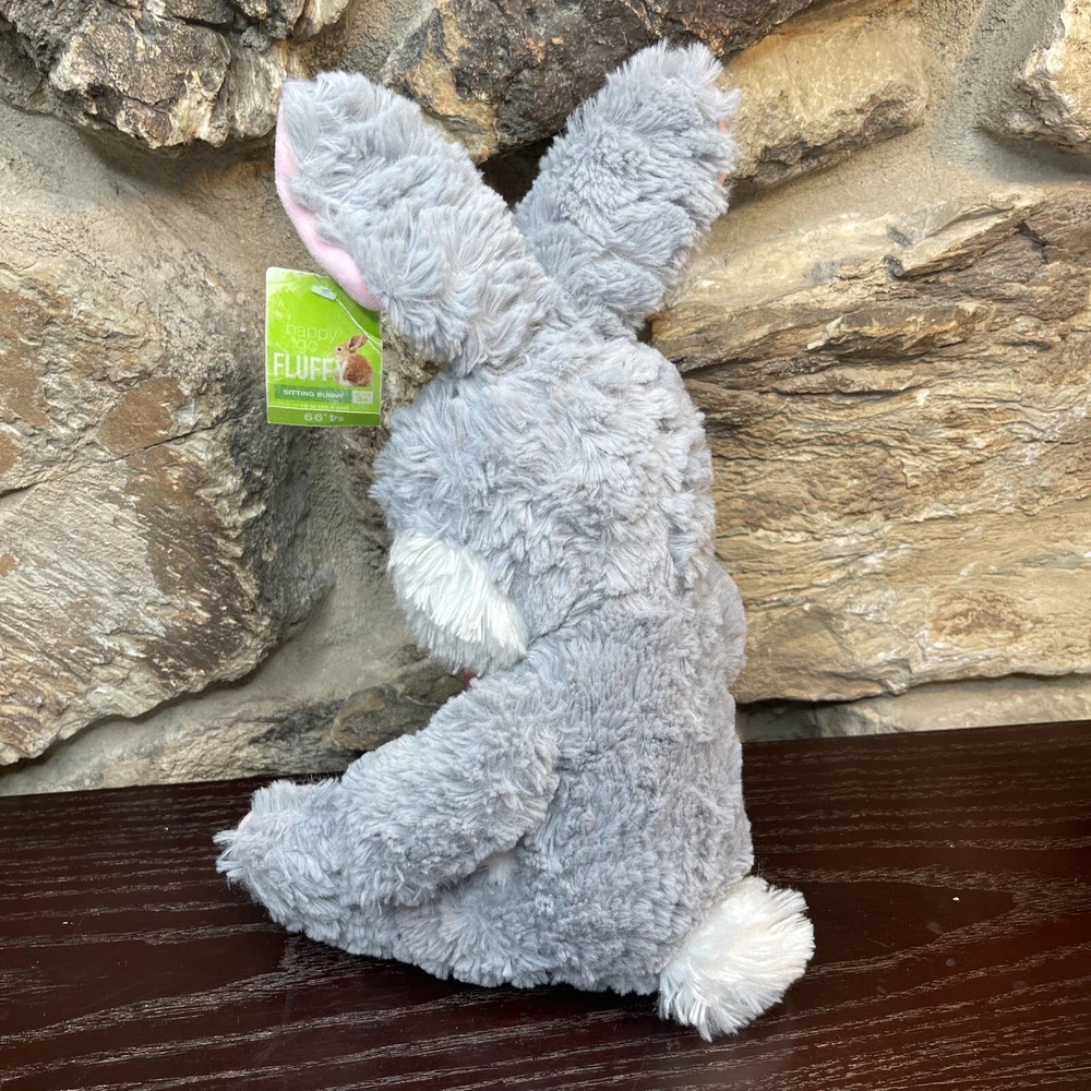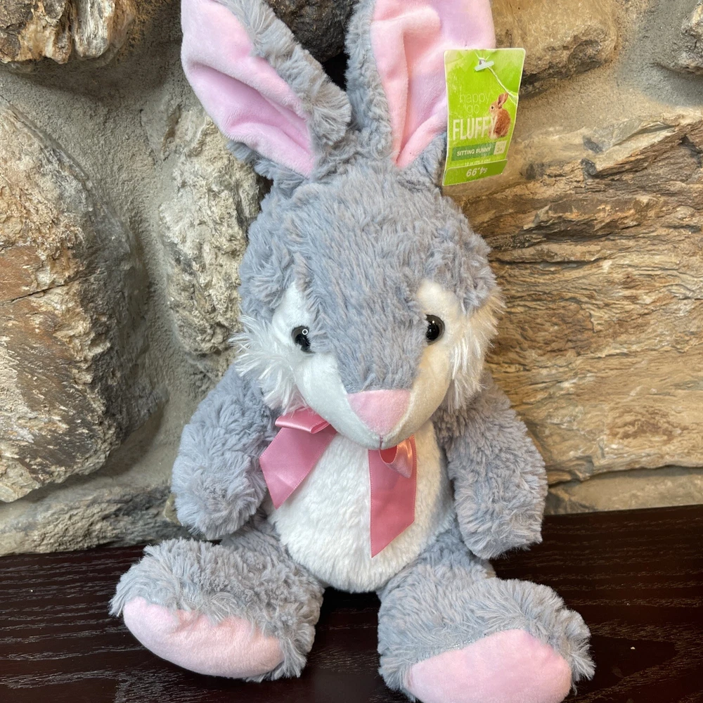 Bunny Rabbit Plush Happy Go Fluffy Gray Pink 13" Easter Bunny Walgreens New. The tag is slightly tattered- faded and crinkled. Shipped with USPS First Class
