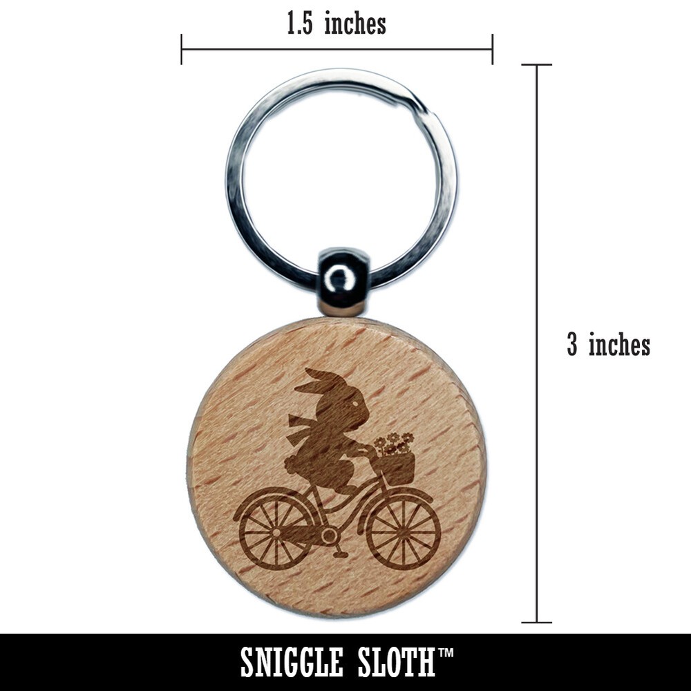 Bunny on Bike Engraved Wooden Keychain Charm
