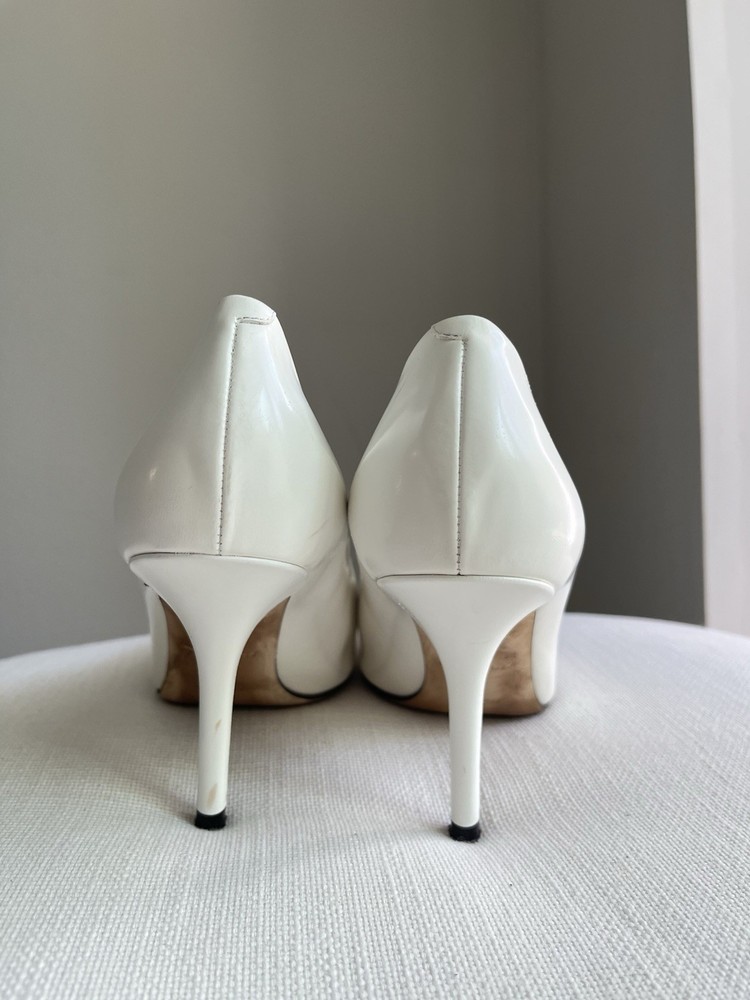 Elegant Burberry pumps featuring a chic white and tan design. Perfect for any occasion, these shoes offer both style and comfort. Size 38. 90mm heels. Made in Italy