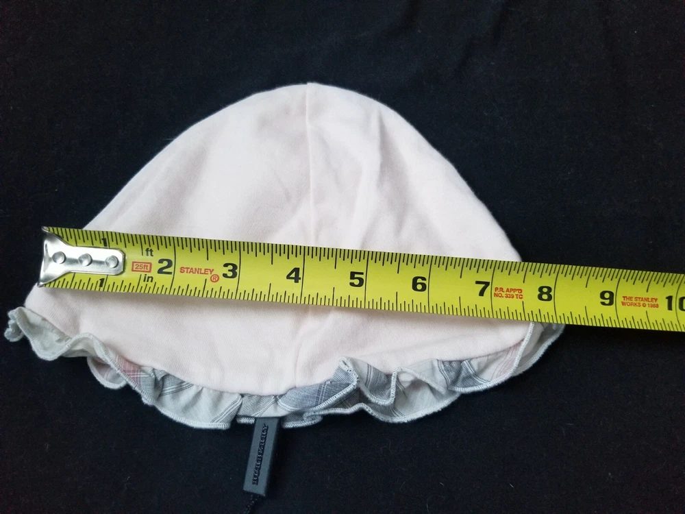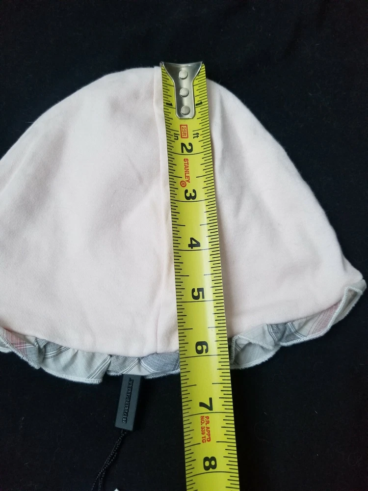 Burberry Baby Girls Hat/Beanie Nova Check Ruffled Trim pink Size 12M Condition is New with tag attached Authentic Comes as shown no box or Burberry bag is included. See photos for measurements and details