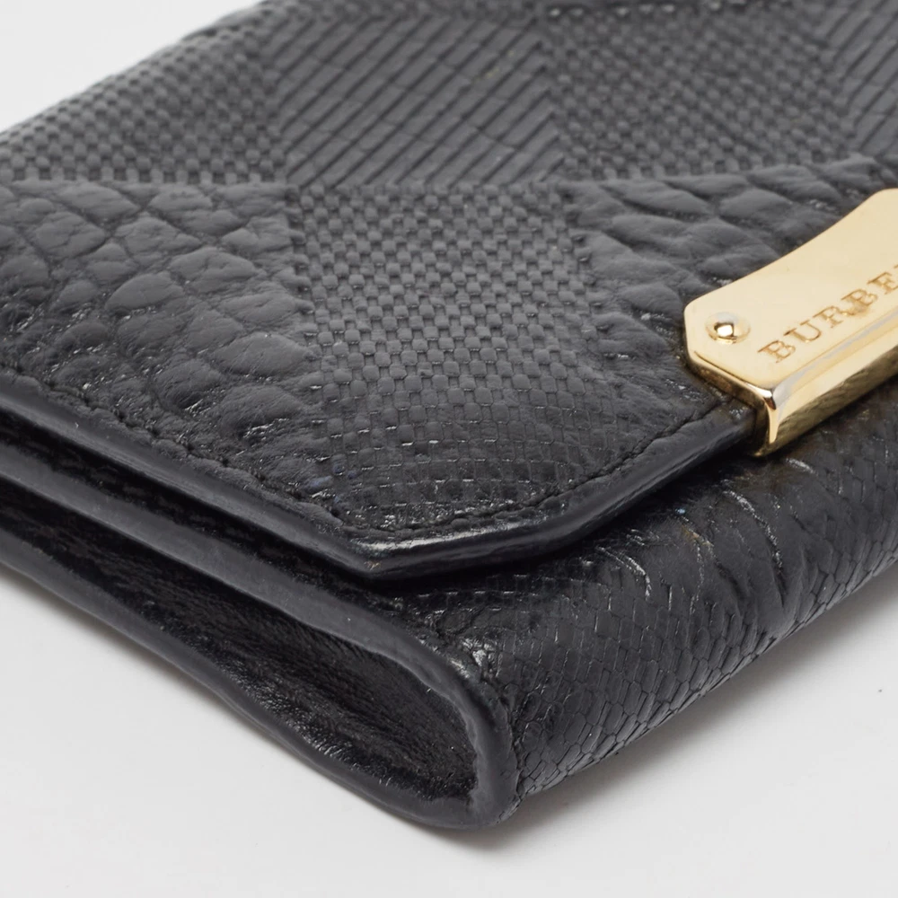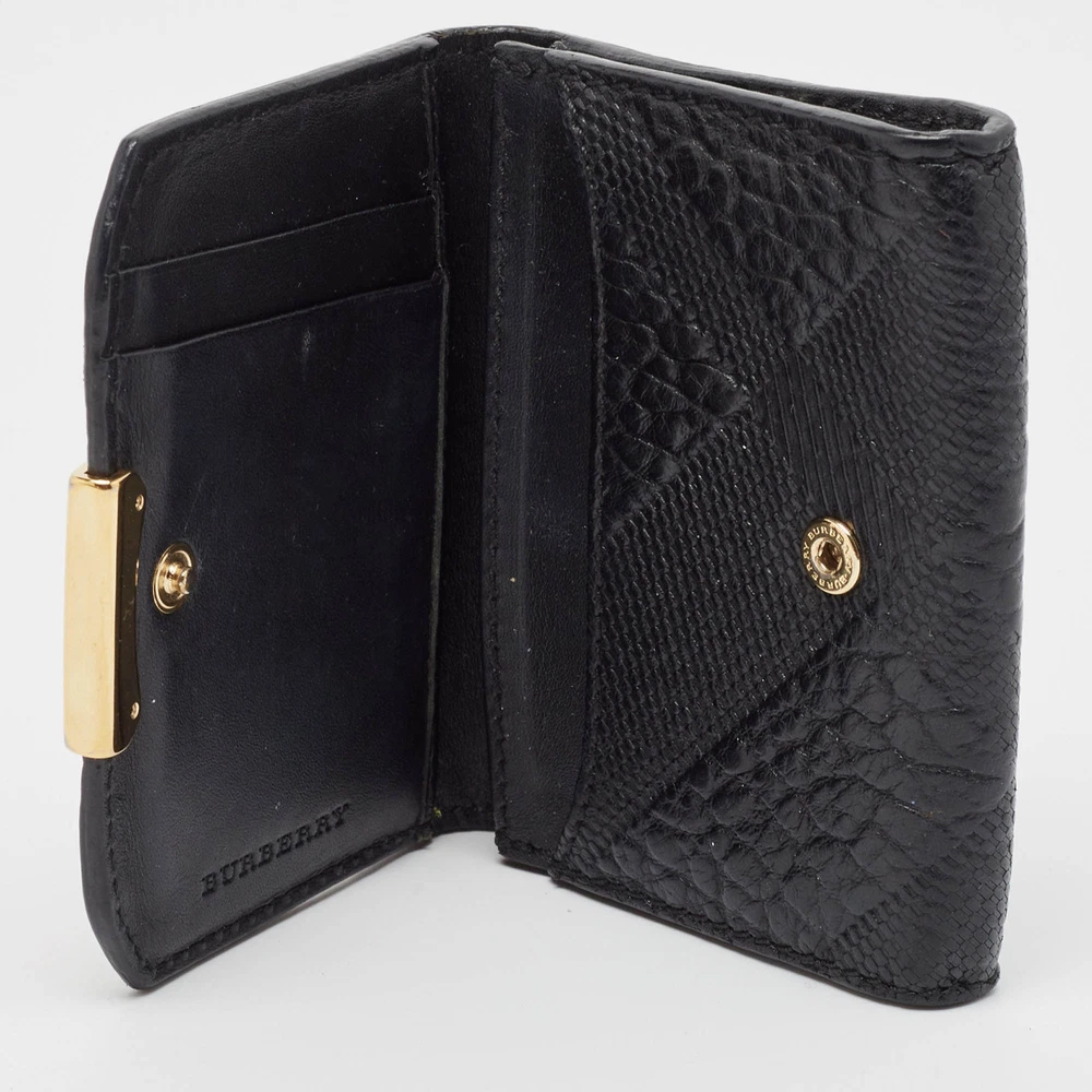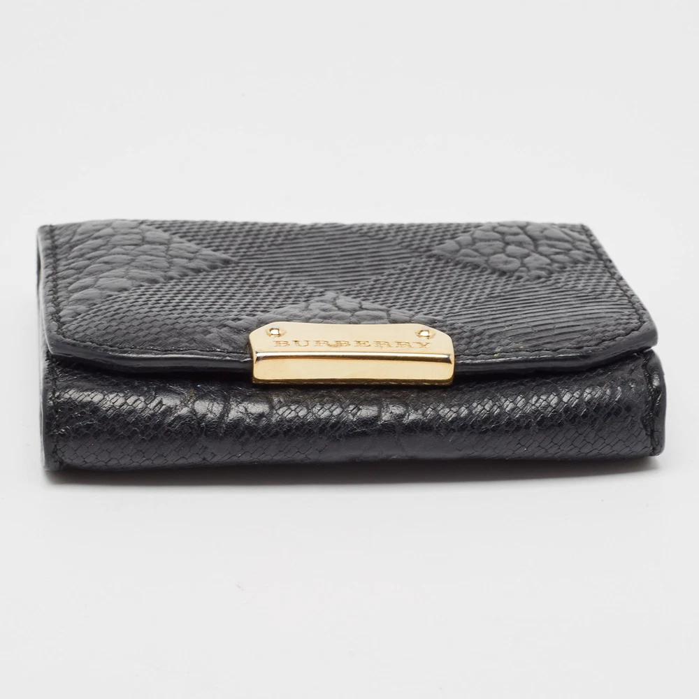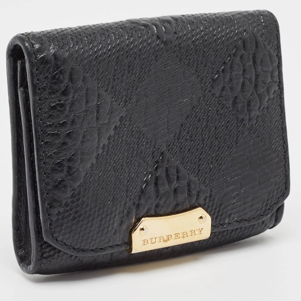 Burberrys card case is a wonderful accessory to pick as an everyday style essential. It is crafted with care and finished with a branded metal clasp.Certified by The Luxury Closet - This item has gone through a detailed authentication process overseen by our experts. We offer a lifetime guarantee of authenticity on all our items. Import duties, taxes and charges are not included in the item price. These charges are the buyers responsibility. Please check with your country’s customs office to determine what these additional cost will be prior to buying. Our eBay Store About Us Contact Us Add to Favorite Sellers Burberry Black Embossed Check Leather Flap Card Case $327.8 Burberrys card case is a wonderful accessory to pick as an everyday style essential. It is crafted with care and finished with a branded metal clasp. Product Details Brand Color Black Dimensions Height: 8.5 cm, Width: 2 cm, Length: 11 cm Material Leather Size Outsole Width Outsole Length Heel Height Includes The Luxury Closet Packaging Certified by The Luxury Closet This item has gone through a detailed authentication process overseen by our experts. We offer a lifetime guarantee of authenticity on all our items. How We Check The in-house team of experts at The Luxury Closet is highly trained to verify the authenticity and the condition of the luxury products. They ensure that only 100% authentic items are put on sale.The evaluation process is unique with its own mix of assessment criteria and differs according to the category. Each item is evaluated based on the following combination of hallmarks, hardware, stitching, symmetry, material, craftsmanship, stamping, codes, hologram stickers, and packaging. Our authenticators also check if the items have been modified or amended (e.g., aftermarket diamonds, replaced batteries, repaired bags, etc.) International Buyers Import duties, taxes and charges are not included in the item price. These charges are the buyers responsibility. Please check with your country’s customs office to determine what these additional cost will be prior to buying.