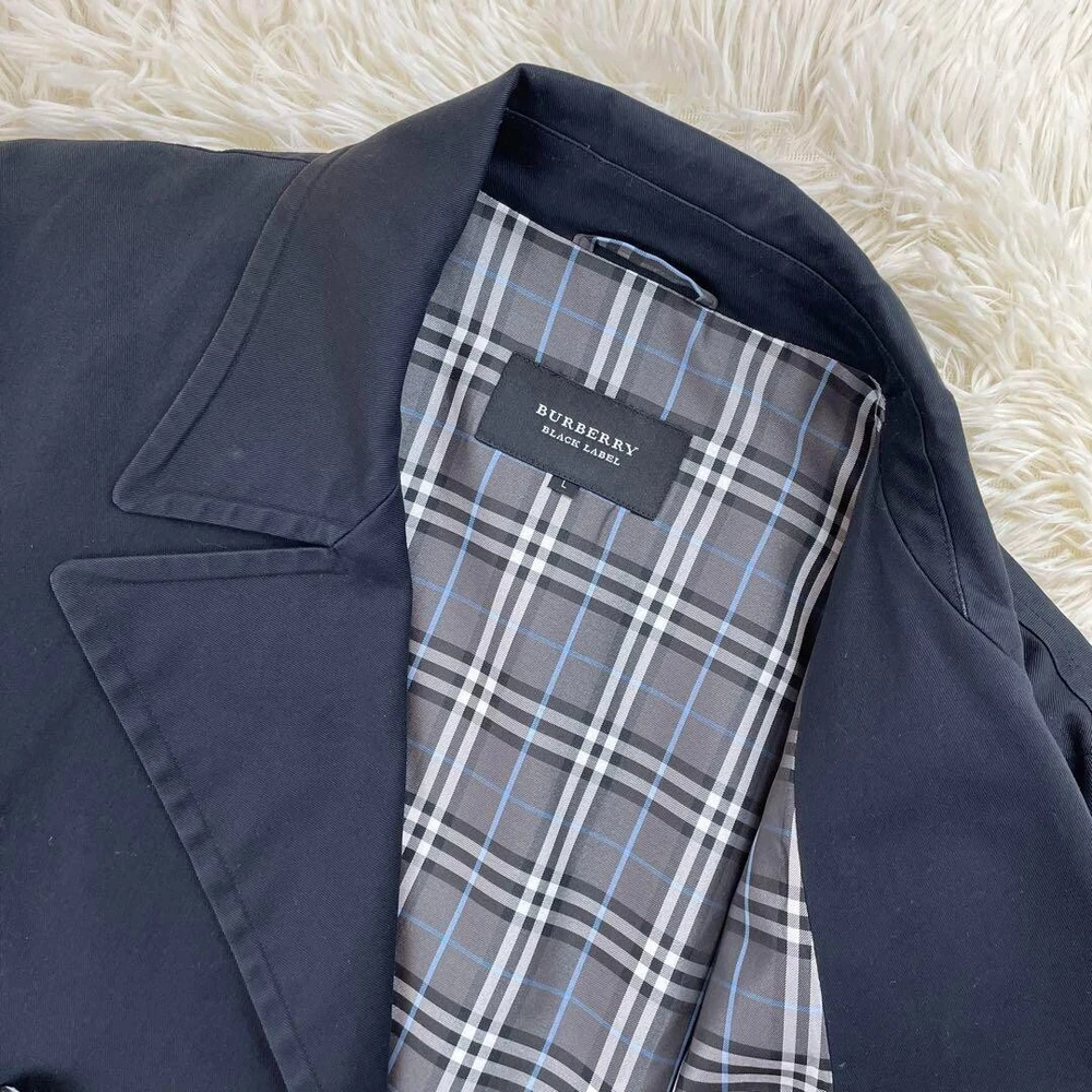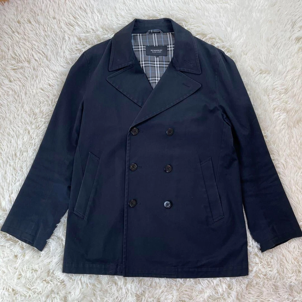 Burberry Black Label Black Nova Check Pea Coat Cotton Japan Men Size M Used