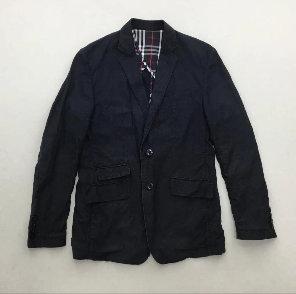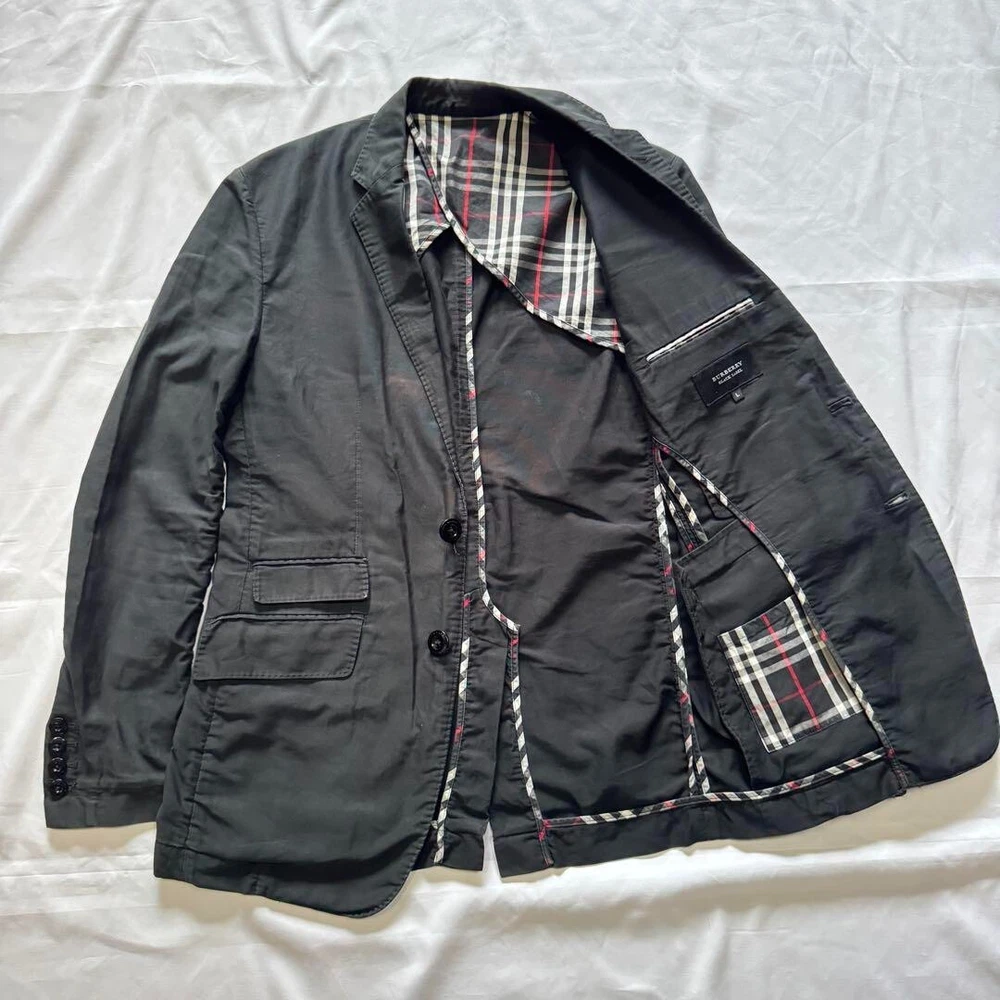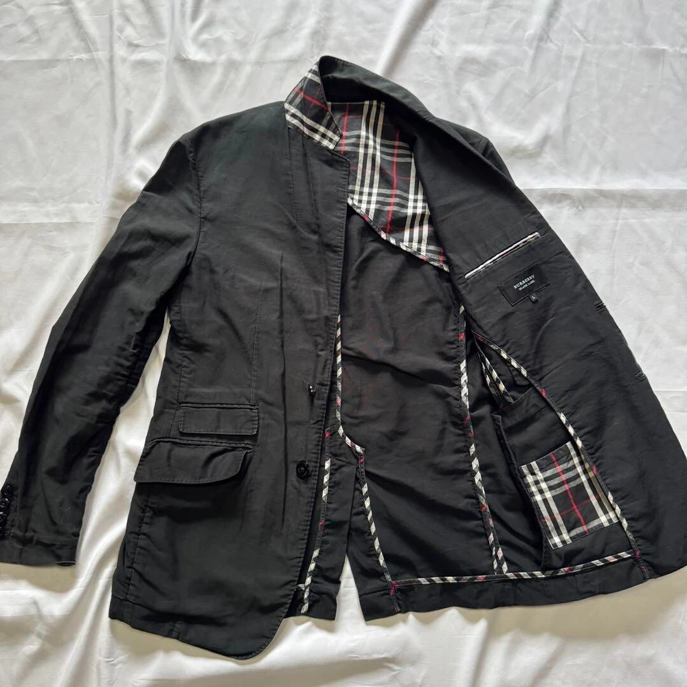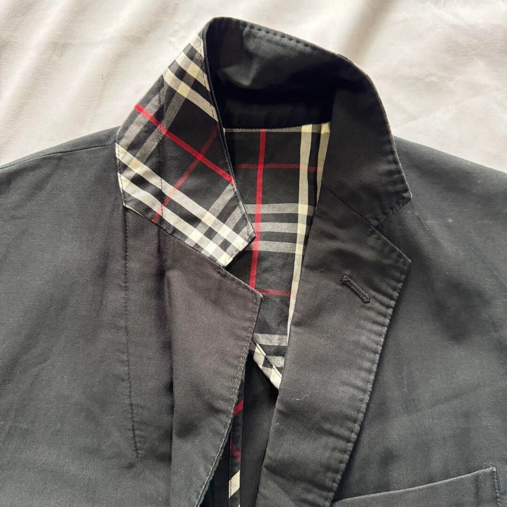 Burberry Black Label Nova Check Tailored Jacket Black Cotton Men Size L Used