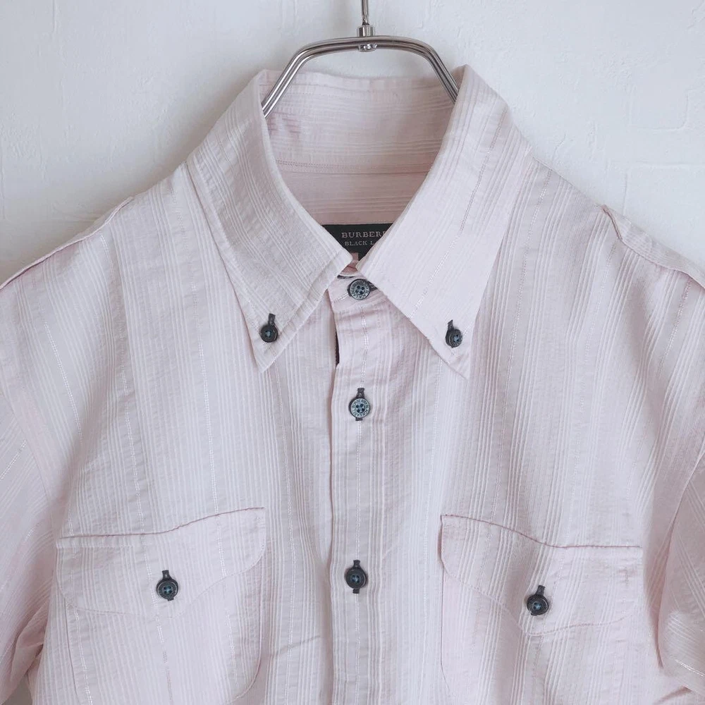 Burberry Black Label Short Sleeve Shirt Light Pink Men Size 2/S-M Used STAIN