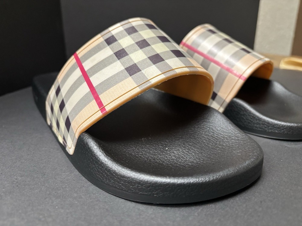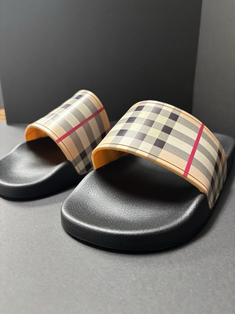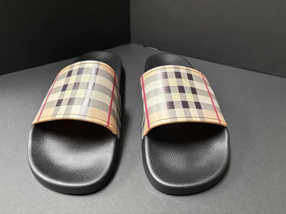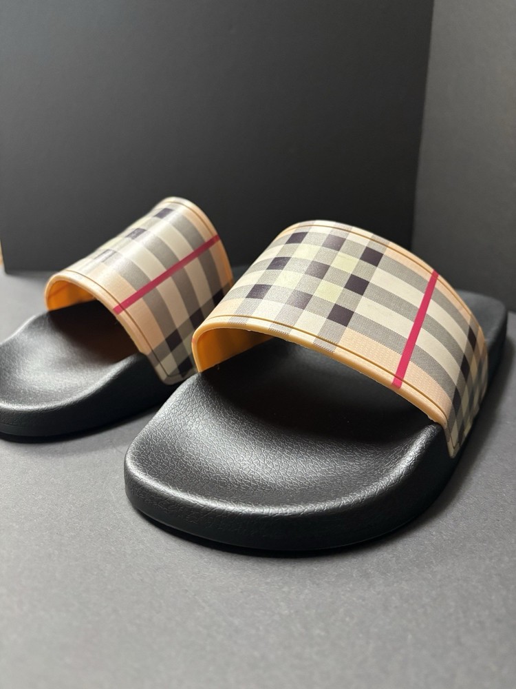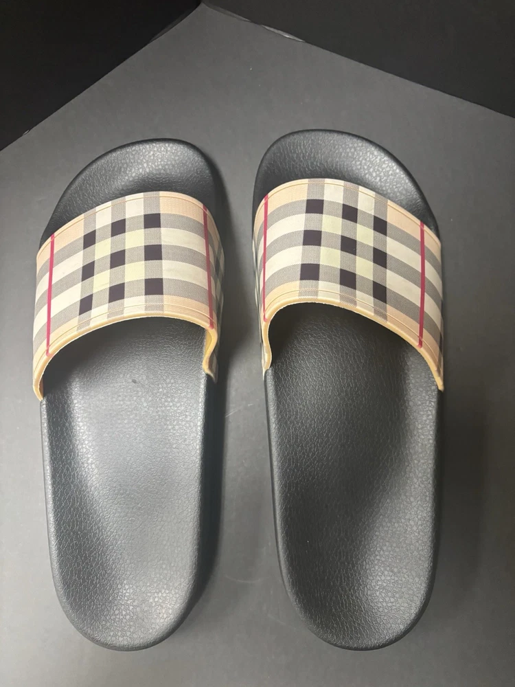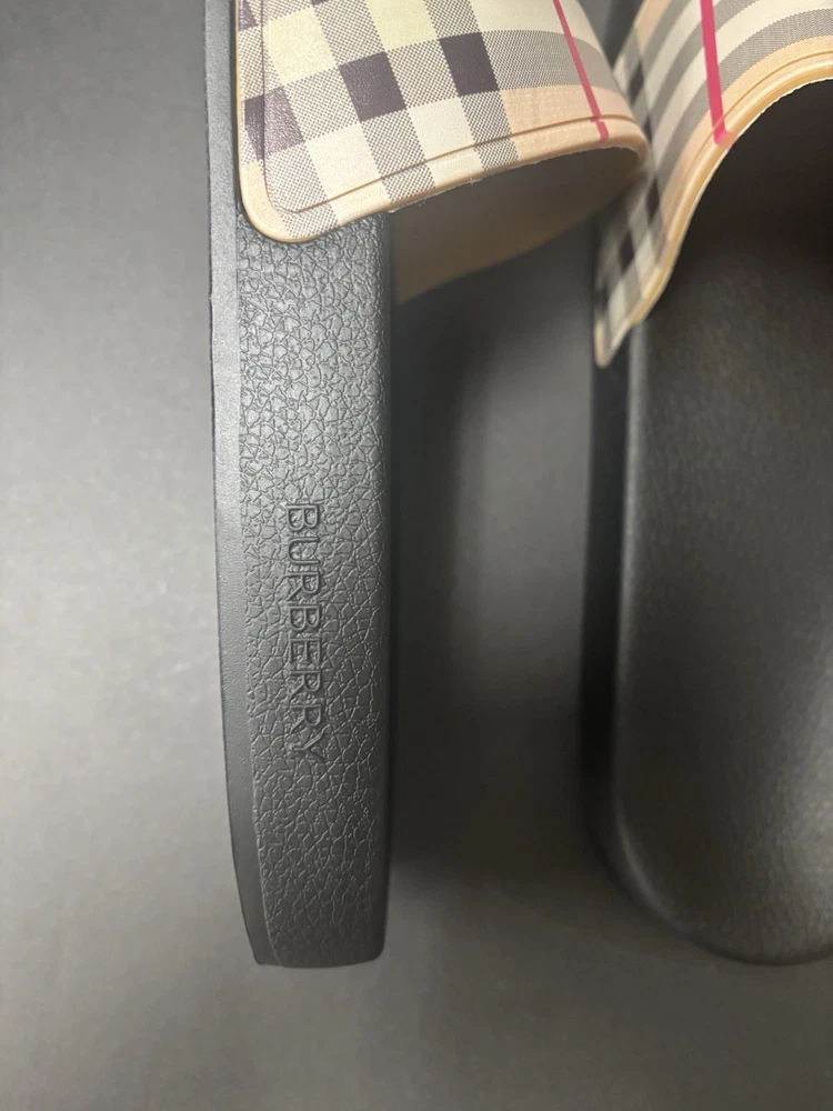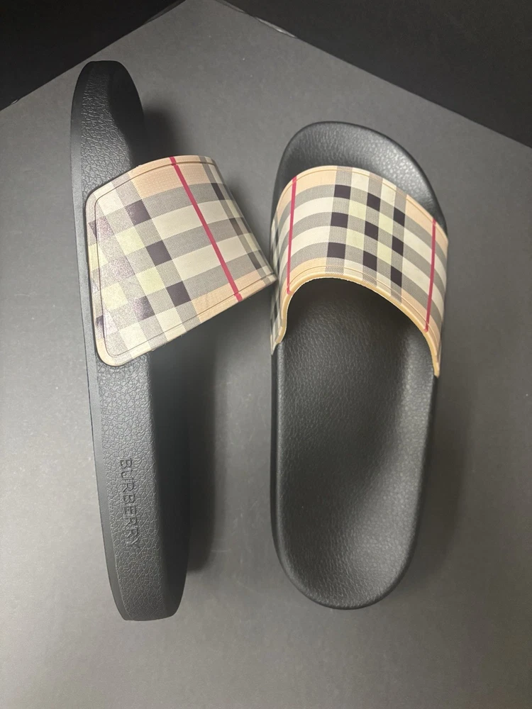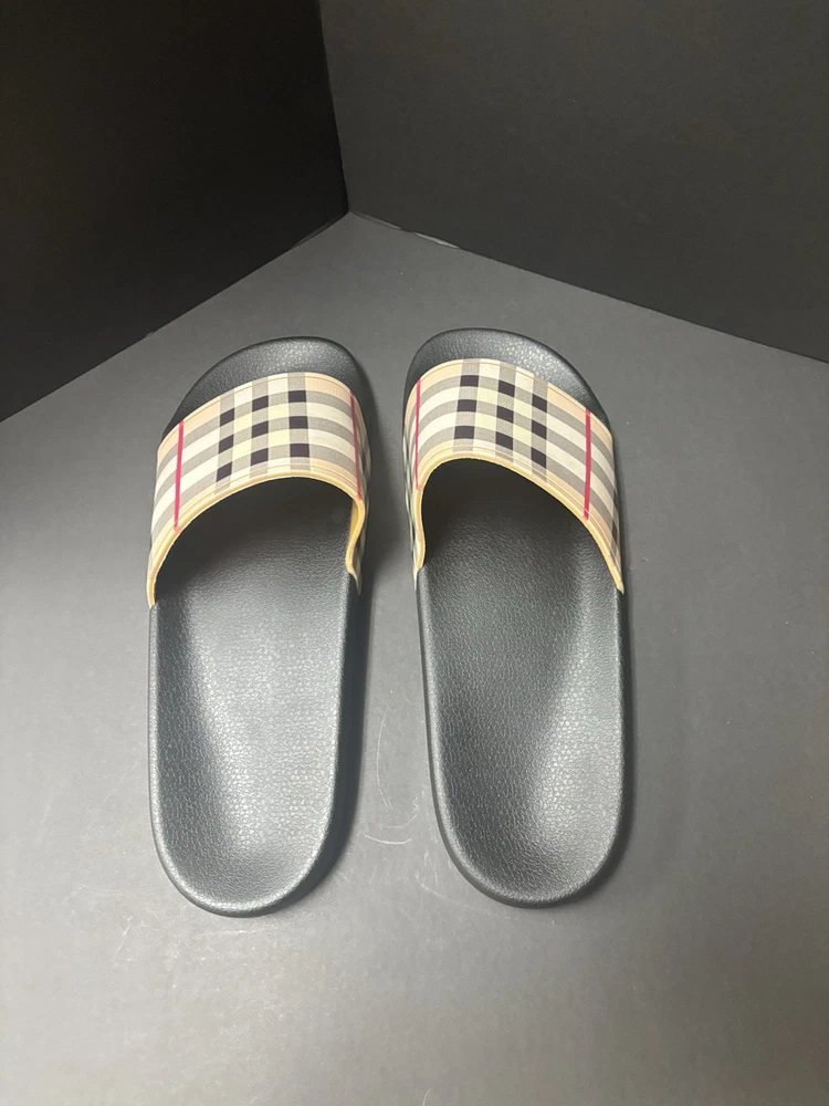 Burberry Black Rubber Vintgage Slides Men Brand New. Shipping Fast & Free!