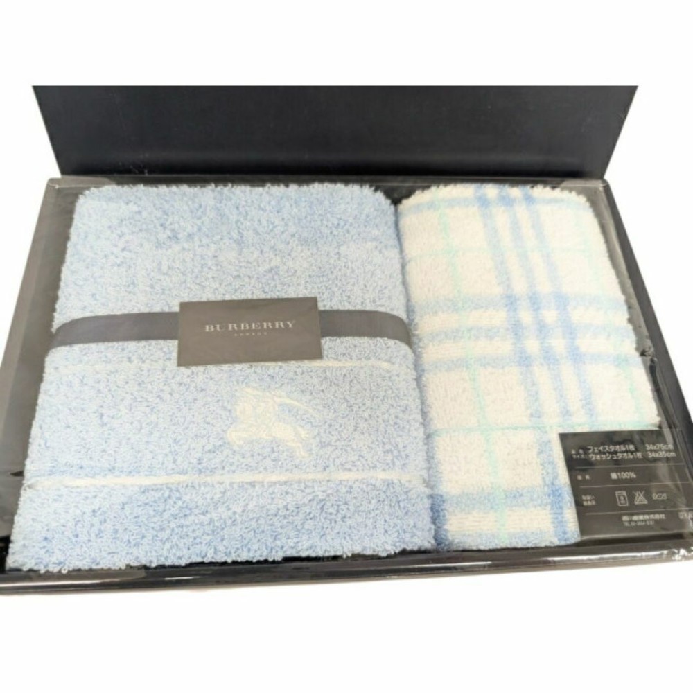 Burberry Cotton Towel Set 2 Pieces Blue Check Made in Japan Used Key Features Burberry towel set featuring two high-quality washcloths made of 100% cotton. Crafted in Japan, these soft, blue checkered towels are perfect for everyday use. The set includes two towels, stored in a box with minor signs of wear such as scratches and slight scuffs. Please note, due to hygiene reasons, returns are not accepted. The towels are in good condition with no visible stains or dirt. The towels are approximately 2 months old. **Item Specifics:** Brand: Burberry Product Type: Towel Set Material: Cotton 100% Color: Blue, Light Blue Country of Manufacture: Japan Included Items: 2 Towels, Box Condition: Used, minor signs of wear, no stains or dirt Specifications Brand No Brand Country Japan Product Description Item Title Burberry Towel Set Nishikawa Sangyo 2 Pieces Payment Supports managed payments Please pay within 5 days after auction is finished. About Us We are located in Japan. It's our pleasure to make you happy by proposing our recommend item. If you have any questions or request about items, please feel free to ask us. International Buyers - Please Note: -Import duties, taxes, and charges are not included in the item price or shipping charges. These charges are the buyer's responsibility. -Please check with your country's customs office to determine what these additional costs will be prior to bidding/buying. -These charges are normally collected by the delivering freight (shipping) company or when you pick the item up - do not confuse them for additional shipping charges. -We do not mark merchandise values below value or mark items as - gifts - The US and International government regulations prohibit such behavior. Thank you for your understanding.