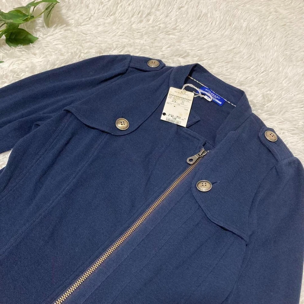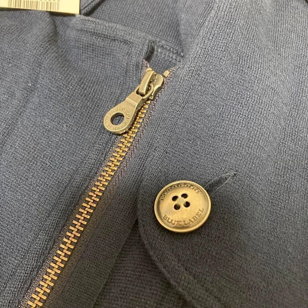 Burberry Blue Label 3/4 Sleeve Jacket Zip up Thin Navy Cotton Women Size 38 Used