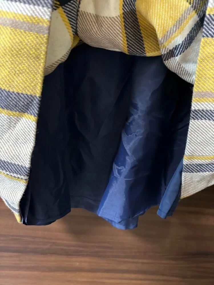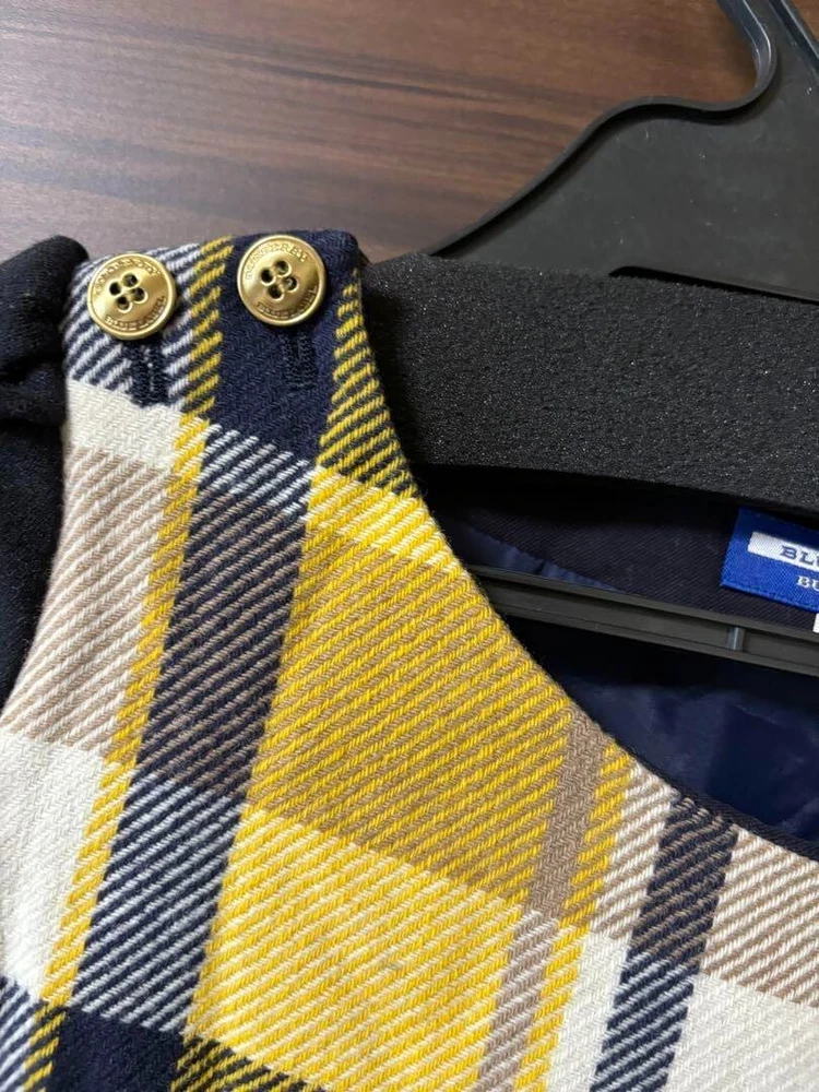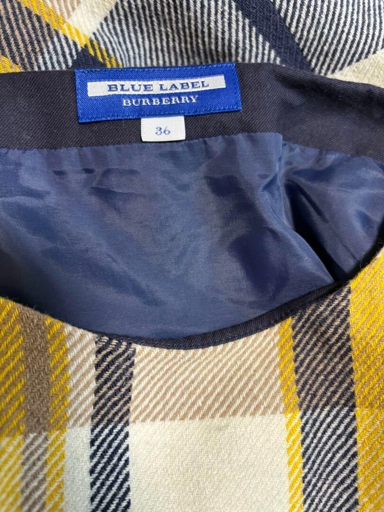 Burberry Blue Label Check Dress Wool Yellow Flare Skirt Women Size 36 Used