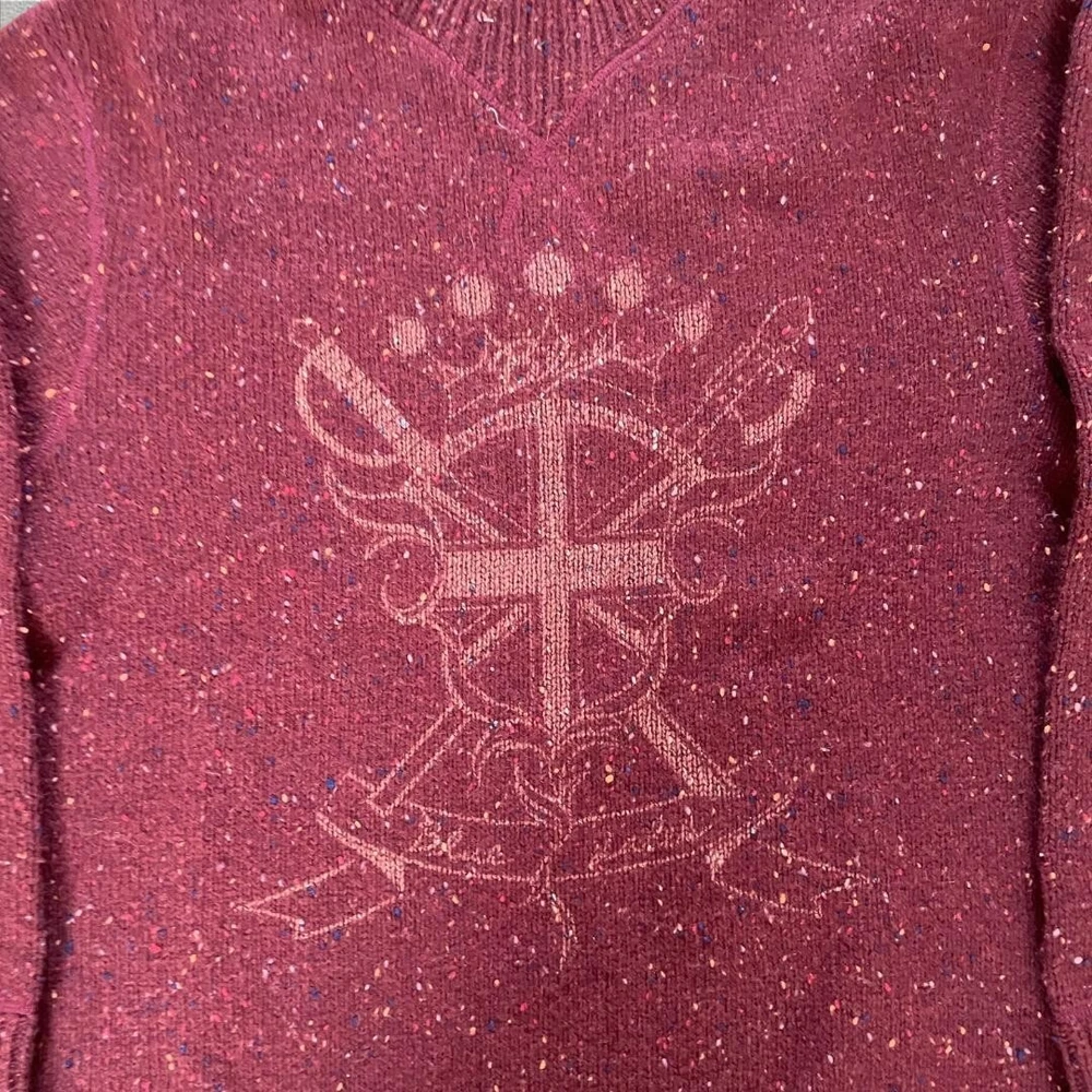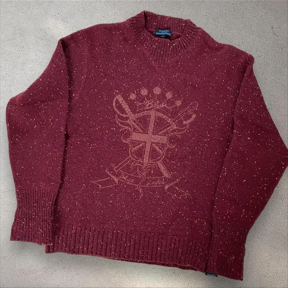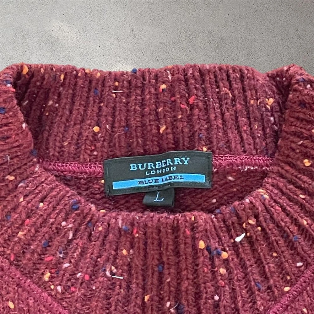 Burberry Blue Label Deka Logo Knit Oversize Herringbone Red Women Size L Used