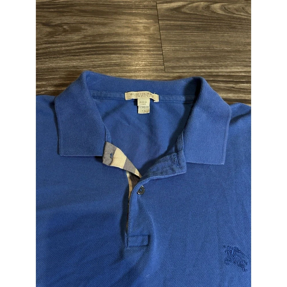 Burberry Brit Mens XL Golf Pique Polo Blue Equestrian Logo Nova Check Plaid Trim. Condition is Pre-owned. Shipped with USPS Ground Advantage.