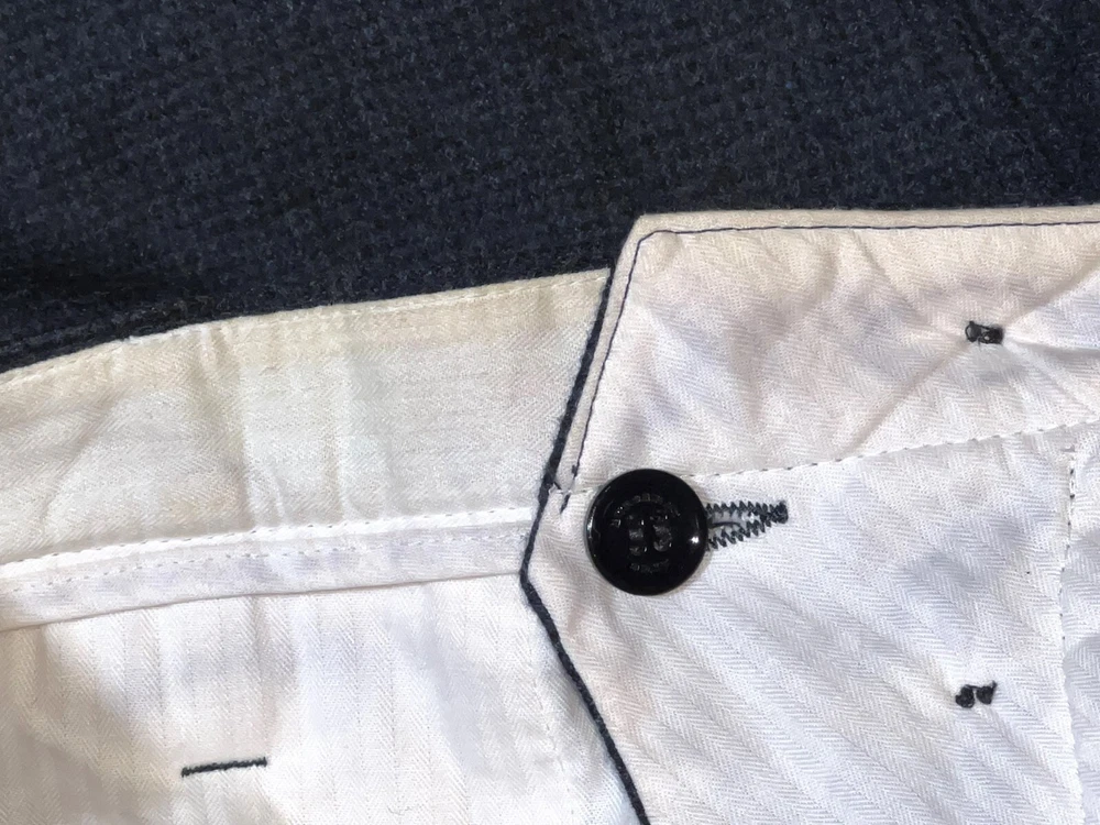 Burberry Brit Navy Blue Wool Blend Flat Front Dress Slacks Pants ~ Men's Size 38R. Measures: 19.5" flat across the front of the waist unstretched, 10" Rise, 33.5" inseam, 42.5" long from waist to bottom hem. Great gently used condition. Minor discoloration along inside lining rim, see pics.