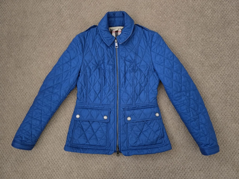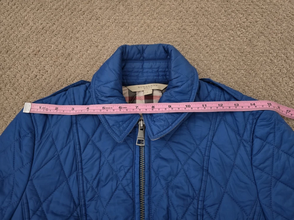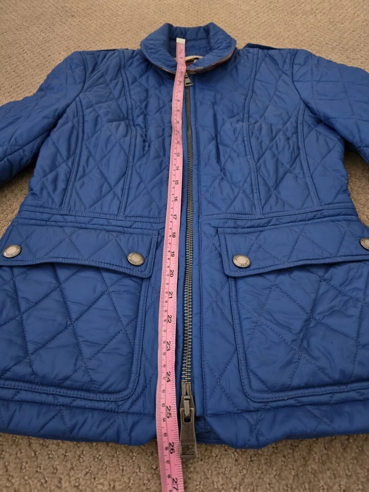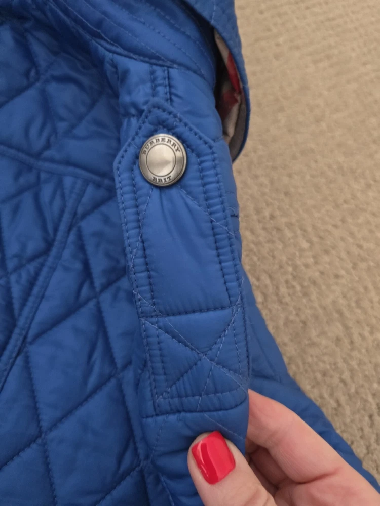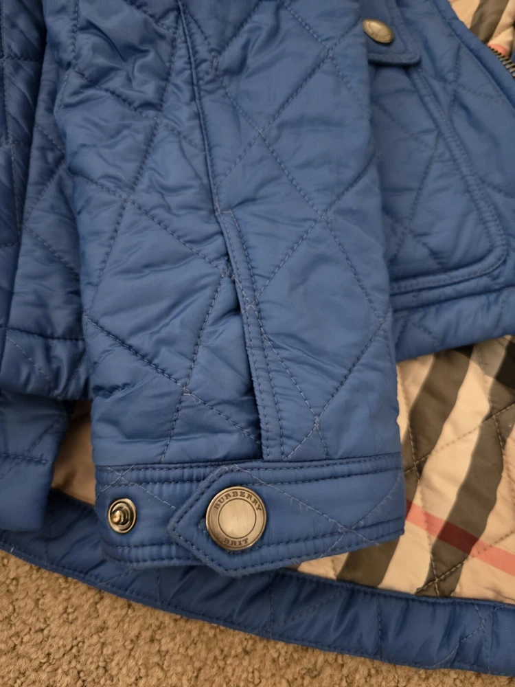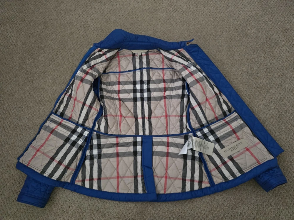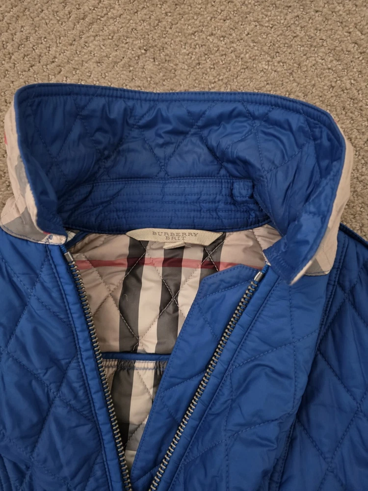 I bought it few years ago, in the Netherlands in Burberry store. I have been wearing it with pleasure. I am very careful with clothes. The jacket is in great condition, collar is clean, no stains , no holes. I'm selling this jacket because I moved to Florida and I don't have a chance to wear it. Pls check photos for exact measurements. Color is sapphire blue.