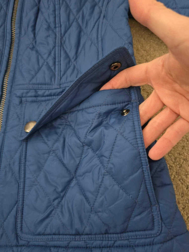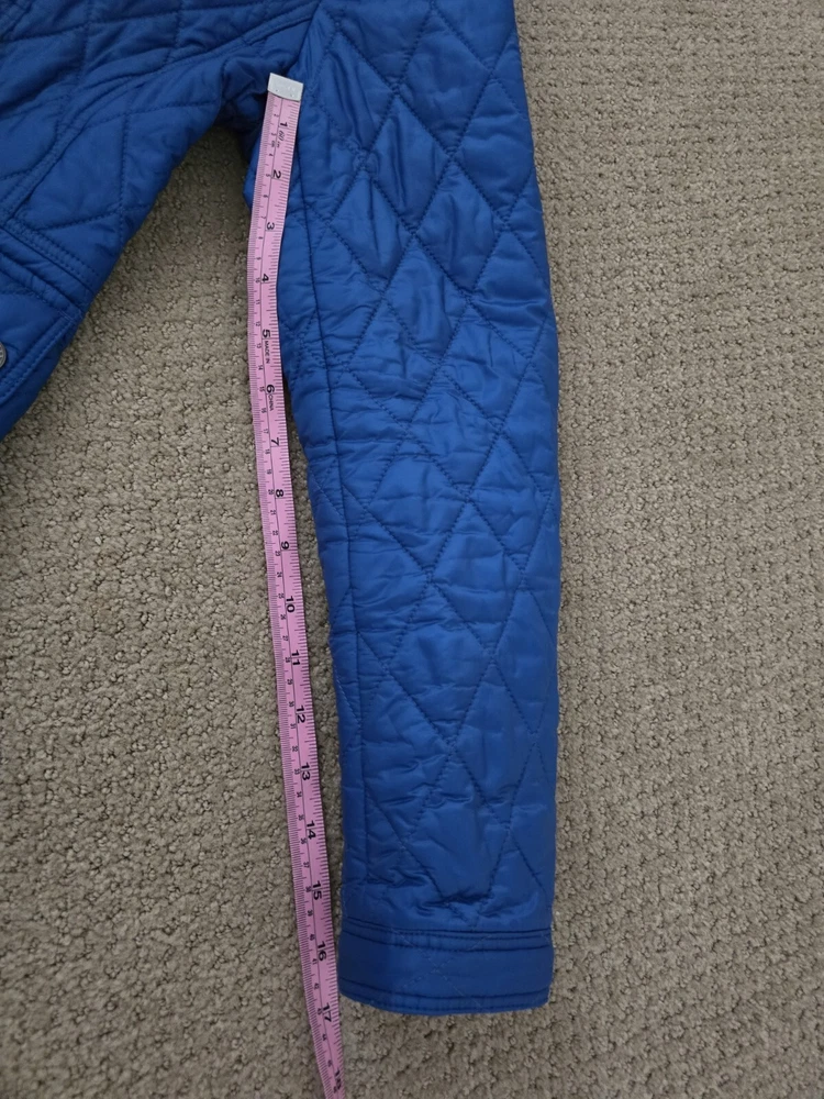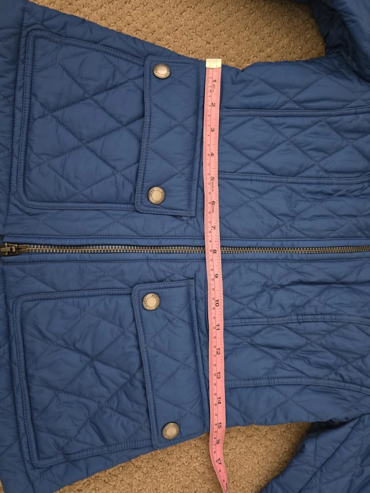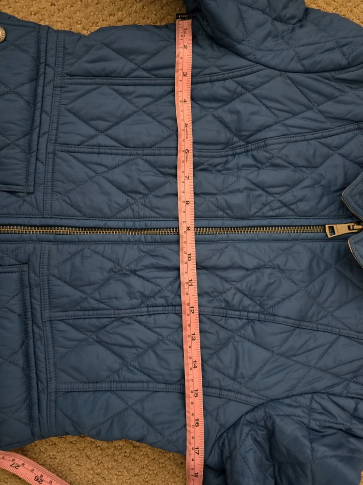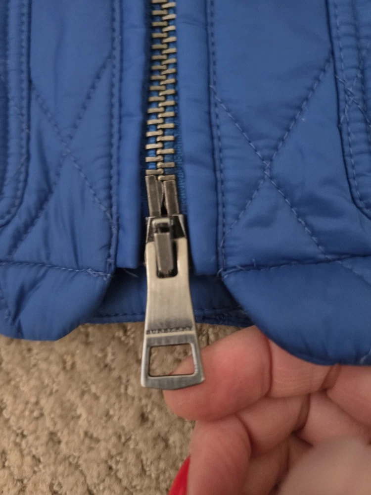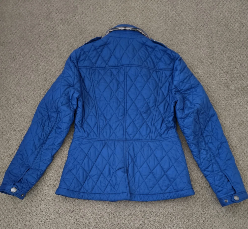 I bought it few years ago, in the Netherlands in Burberry store. I have been wearing it with pleasure. I am very careful with clothes. The jacket is in great condition, collar is clean, no stains , no holes. I'm selling this jacket because I moved to Florida and I don't have a chance to wear it. Pls check photos for exact measurements. Color is sapphire blue.