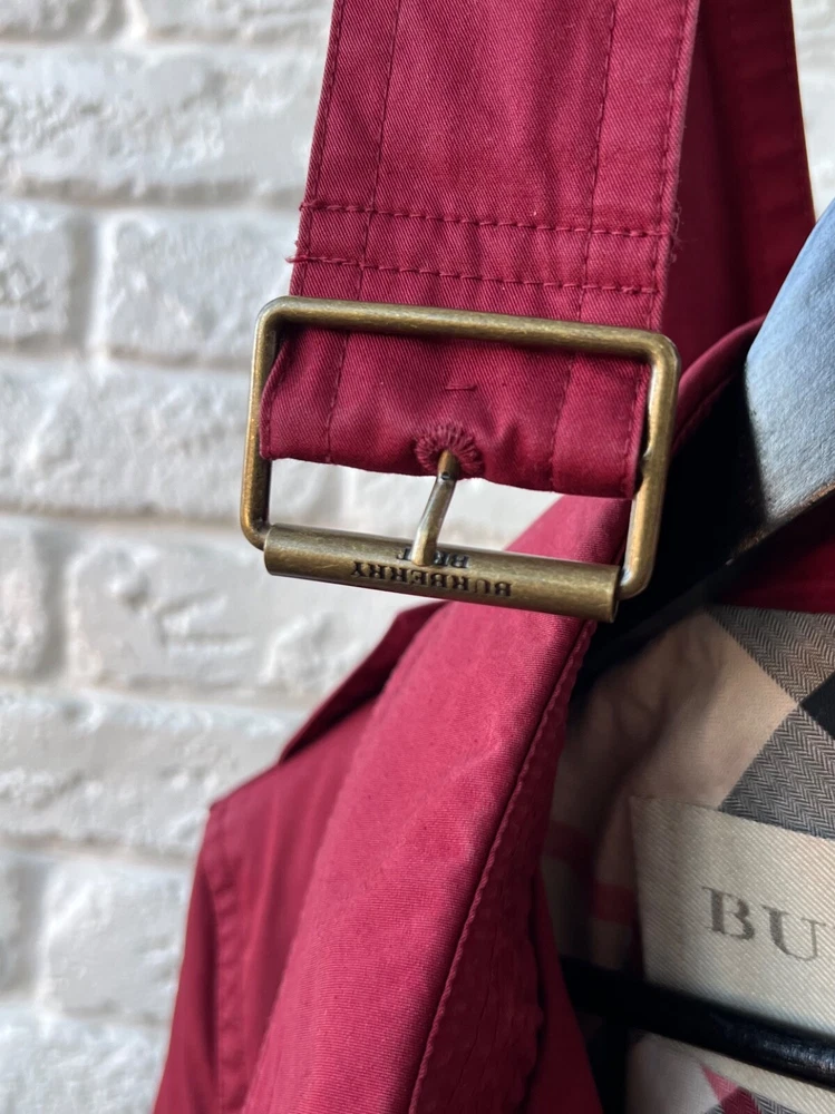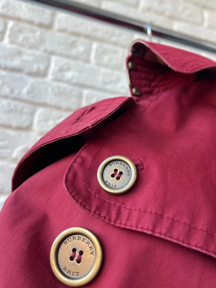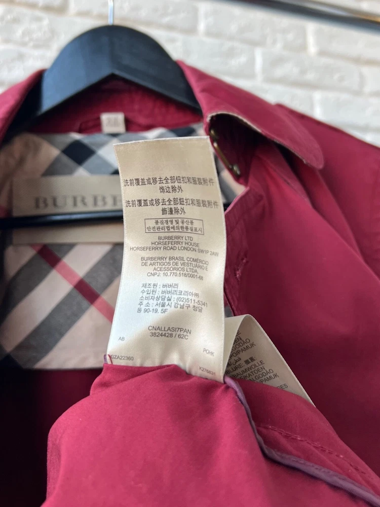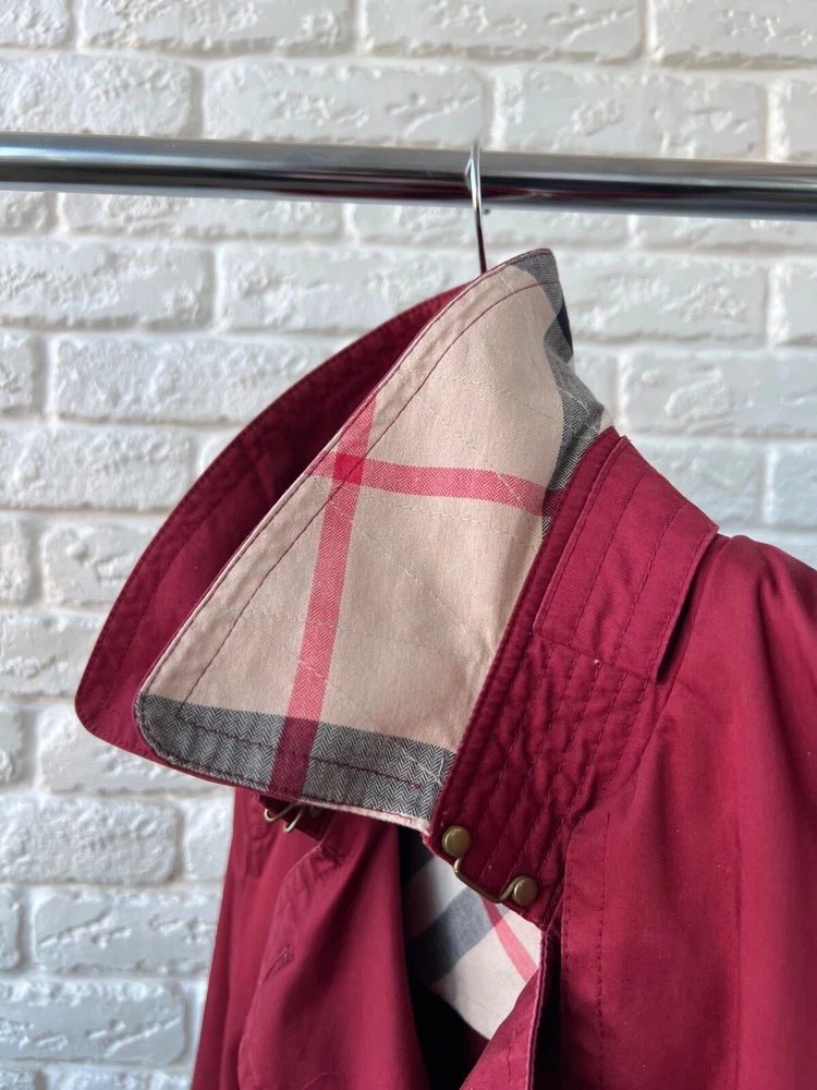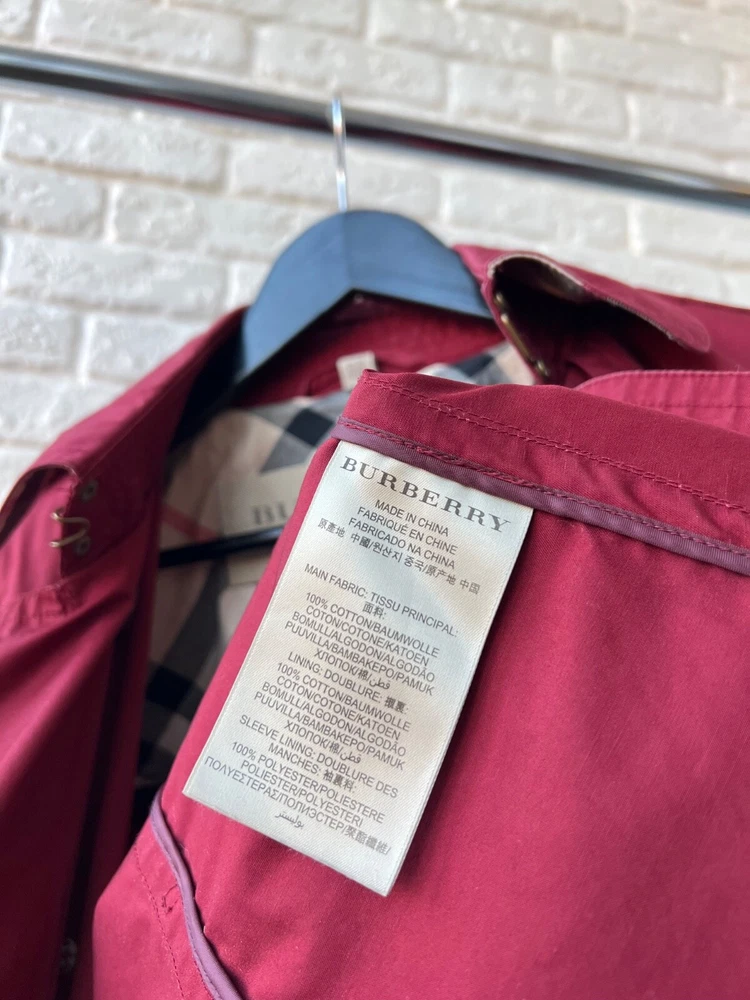 Size Type: Regular Brand: Burberry Size: 40 Pattern: Check Color: Red Outer Shell Material: Cotton Style: Trench Coat Features: Belted Department: Women Type: Jacket Model: Burberry Brit