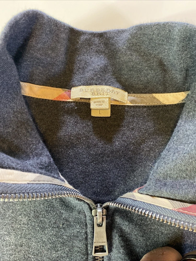 Elevate your wardrobe with this designer Burberry Brit sweatshirt. Crafted from 100% Pima cotton with a tight-knit pattern, this pullover features a high neck and long sleeves with a quarter zip for style and comfort. The black color and embroidered logo accents add a touch of sophistication, making it perfect for any occasion, from casual outings to business meetings to outdoor activities. Machine washable for easy care, this regular-fit sweatshirt is available in size L. Whether you're hiking in the mountains or attending a party in the city, this Burberry sweatshirt is a must-have addition to your wardrobe.