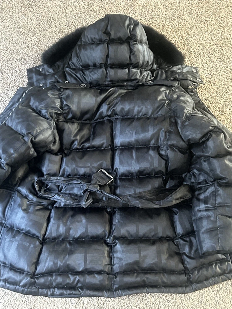 Burberry Brit puffer belted jacket with fur hood real fur