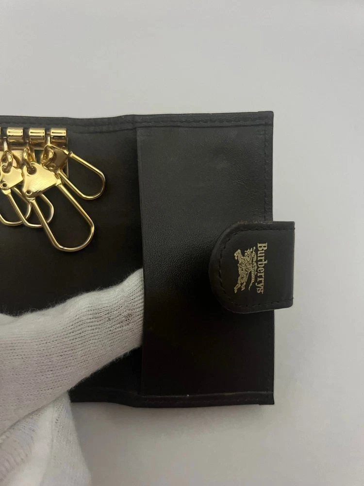 Burberry Brown Leather Key Wallet with 4 Hooks and Original Box E0516-28 Pre-Owned