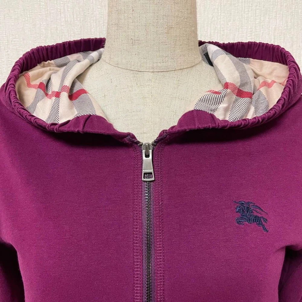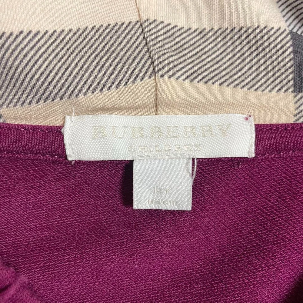 Burberry Children Purple Zip Parka Hoodie Nova Check Logo Kids Size 14Y-164 Used