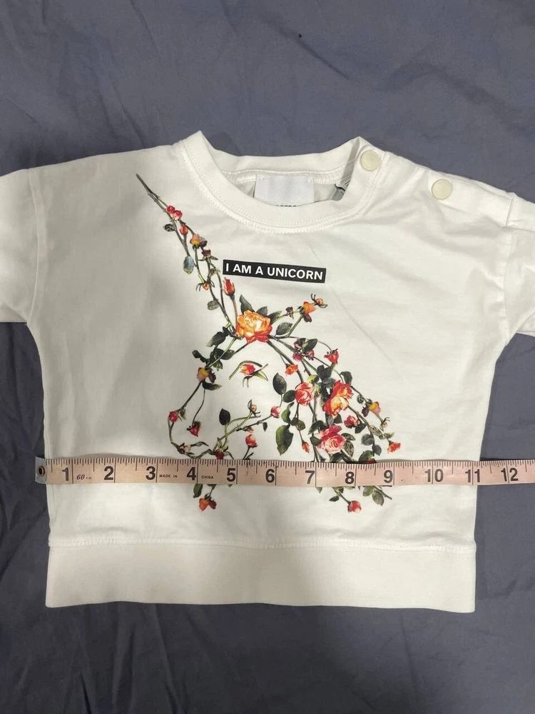 Burberry Girls' Pia Floral Unicorn White Top Size 18M 100% Cotton