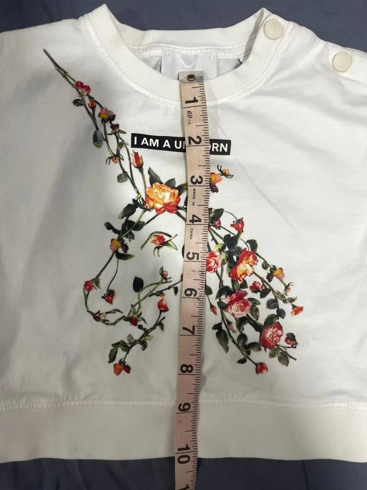 Closure: Button Country/Region of Manufacture: Vietnam Handmade: No Type: T-Shirt Garment Care: Machine Washable Season: Fall, Spring, Summer Occasion: Casual, Travel Fit: Regular Pattern: Floral Style: Basic Department: Girls Material: 100% Cotton Size: M Brand: Burberry Theme: Unicorn Color: White Sleeve Length: Short Sleeve Neckline: Crew Neck