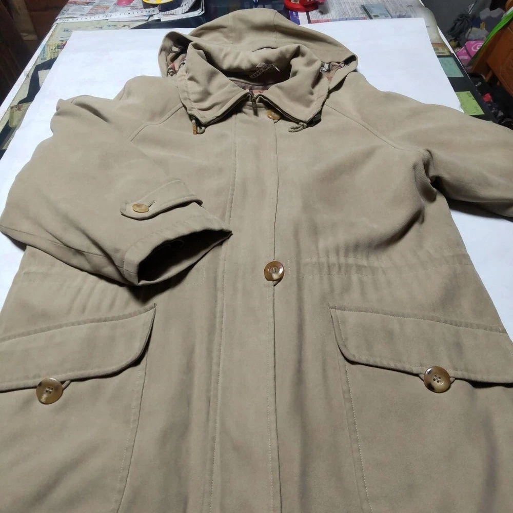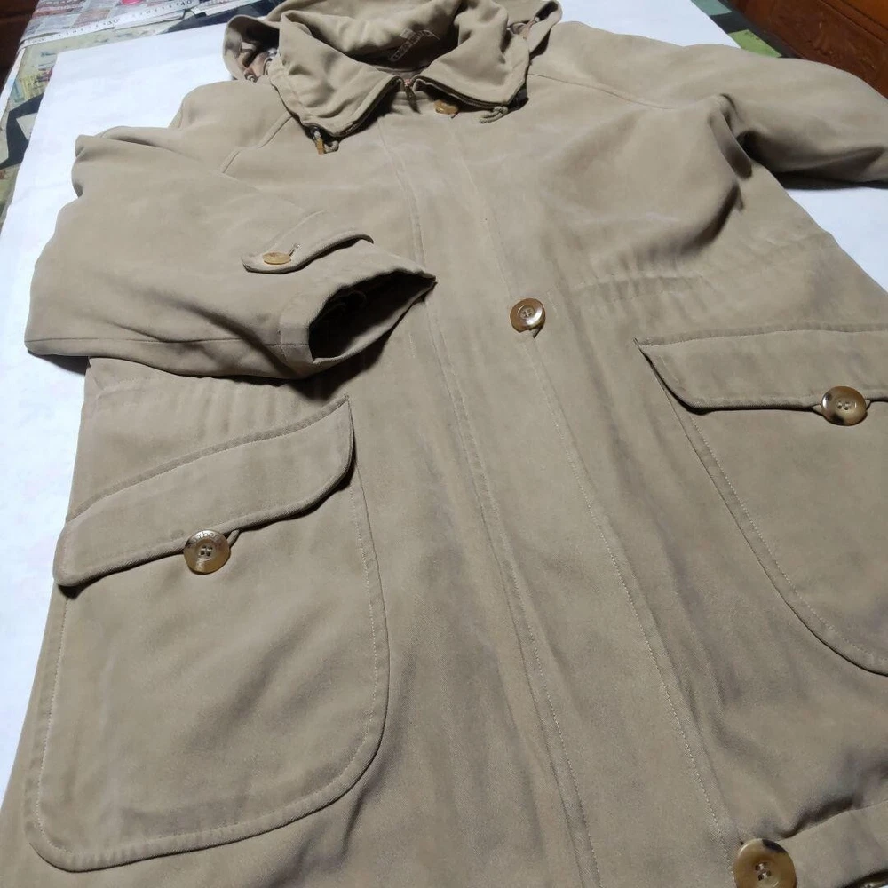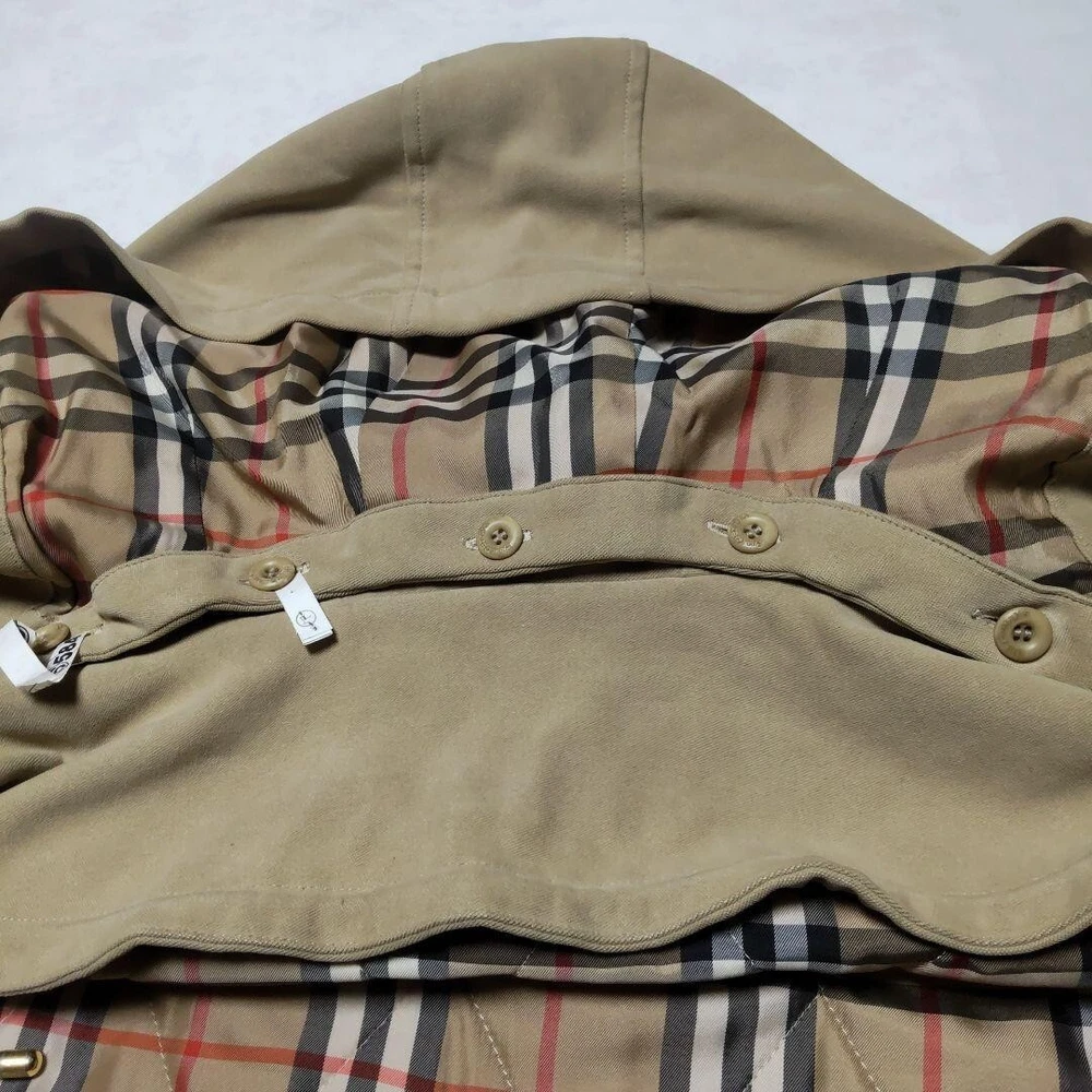 Model: NA Fit: Slim Style: Pea Coat Closure: Button, Zip Accents: Button Jacket/Coat Length: 32.2 in Outer Shell Material: Polyester Fabric Type: NA MPN: NA Insulation Material: NA Department: Men Pattern: Check Personalize: No Color: Beige gtin13: Does not apply Size Type: Regular UPC: Does not apply Type: Coat Product Line: NA Garment Care: NA Theme: NA Vintage: No Performance/Activity: Walking Lining Material: NA Brand: Burberry Season: Fall, Spring, Winter Size: M Chest Size: 47.2 in Warmth Weight: NA Handmade: No Occasion: Business, Casual, Travel Collar Style: NA Features: Collared, Hooded, Pockets