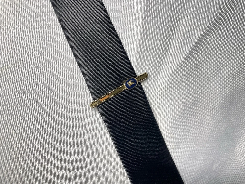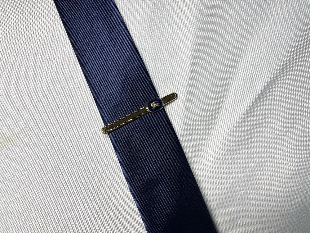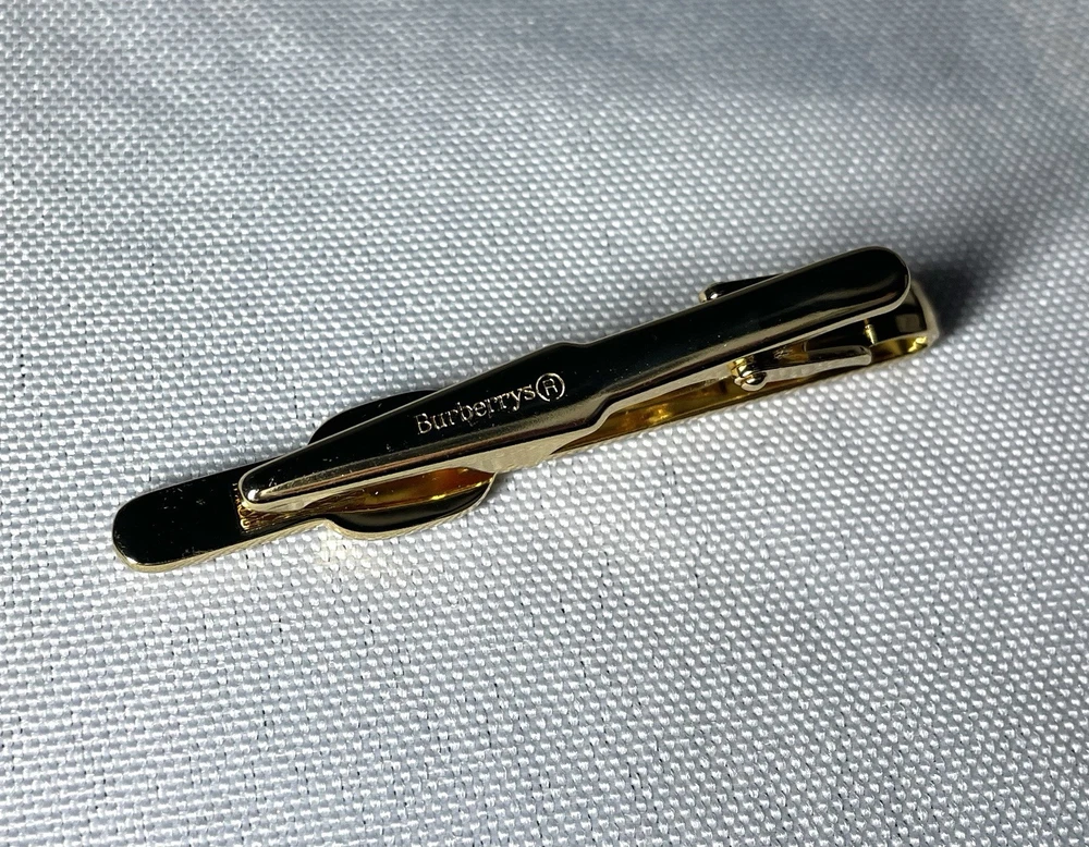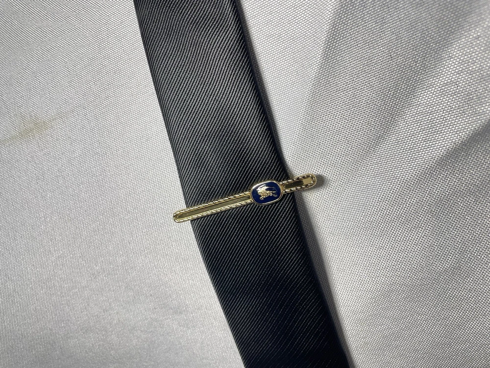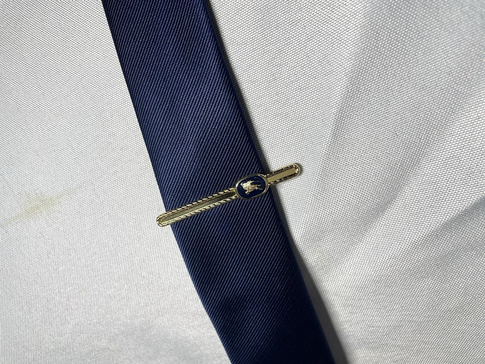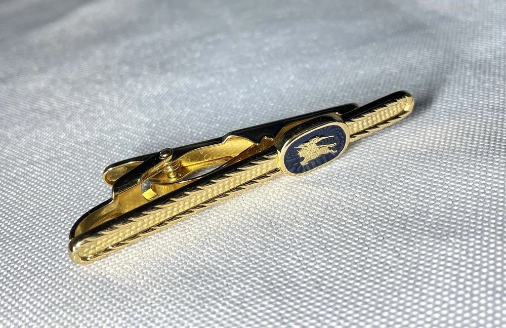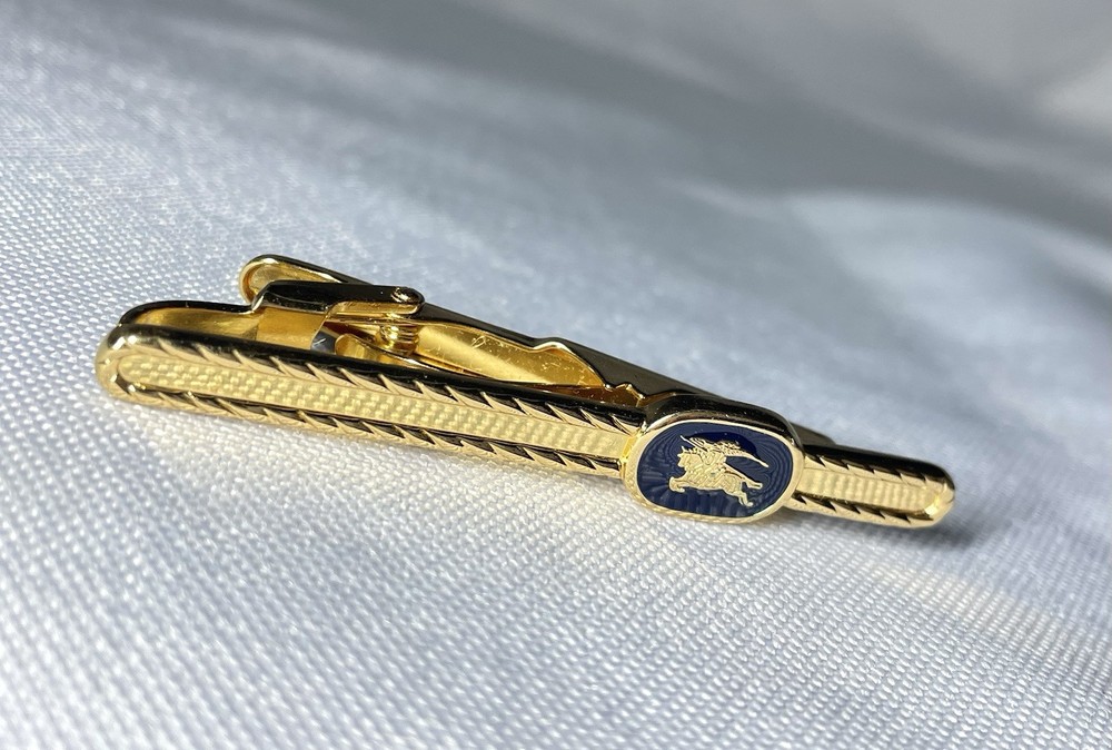 Burberry Horse Night gold and dark navy tie clip bar pin
