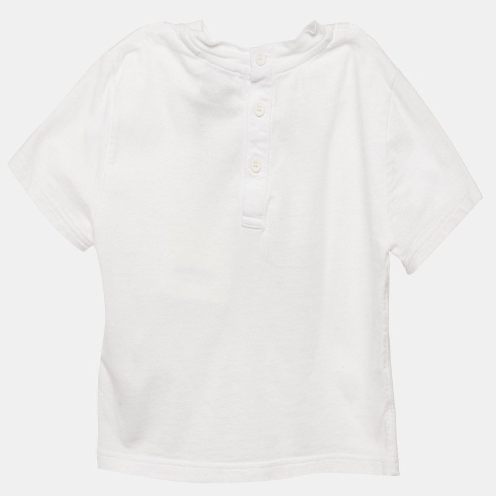 Charming and iconic, this Burberry kids’ T shirt is made from soft white cotton and features an adorable Thomas Bear applique. It’s a cozy yet stylish everyday piece that adds a touch of British heritage to your little one’s wardrobe.Certified by The Luxury Closet - This item has gone through a detailed authentication process overseen by our experts. We offer a lifetime guarantee of authenticity on all our items. Import duties, taxes and charges are not included in the item price. These charges are the buyers responsibility. Please check with your country’s customs office to determine what these additional cost will be prior to buying. Our eBay Store About Us Contact Us Add to Favorite Sellers Burberry Kids White Cotton Thomas Bear Applique Detail T-Shirt 18M $151.8 Charming and iconic, this Burberry kids’ T shirt is made from soft white cotton and features an adorable Thomas Bear applique. It’s a cozy yet stylish everyday piece that adds a touch of British heritage to your little one’s wardrobe. Product Details Brand Color White Dimensions Material Size 18-24 M Outsole Width Outsole Length Heel Height Includes Certified by The Luxury Closet This item has gone through a detailed authentication process overseen by our experts. We offer a lifetime guarantee of authenticity on all our items. How We Check The in-house team of experts at The Luxury Closet is highly trained to verify the authenticity and the condition of the luxury products. They ensure that only 100% authentic items are put on sale.The evaluation process is unique with its own mix of assessment criteria and differs according to the category. Each item is evaluated based on the following combination of hallmarks, hardware, stitching, symmetry, material, craftsmanship, stamping, codes, hologram stickers, and packaging. Our authenticators also check if the items have been modified or amended (e.g., aftermarket diamonds, replaced batteries, repaired bags, etc.) International Buyers Import duties, taxes and charges are not included in the item price. These charges are the buyers responsibility. Please check with your country’s customs office to determine what these additional cost will be prior to buying.