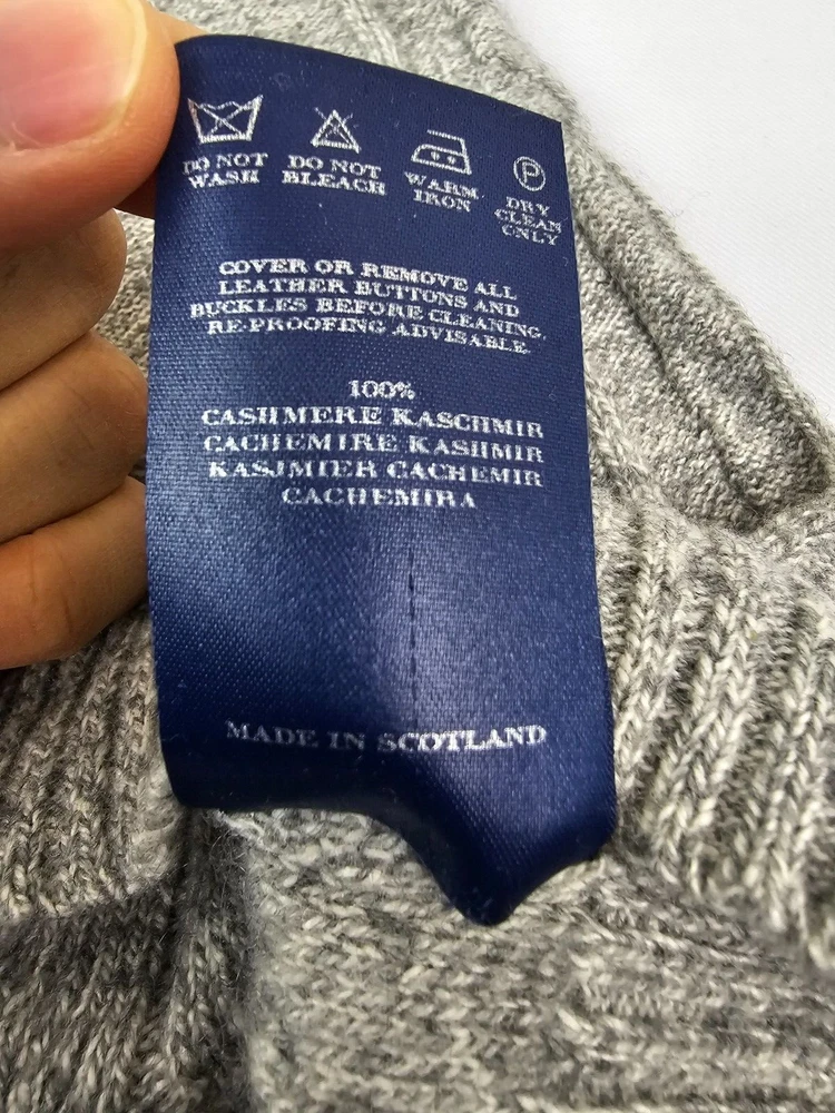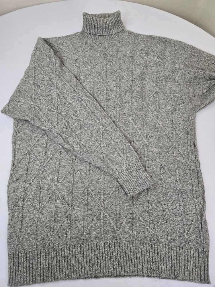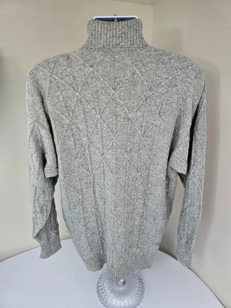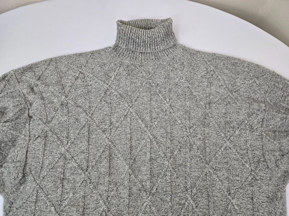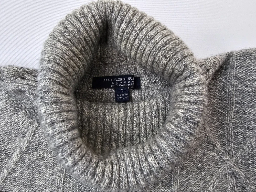Available for sale is a beautiful pre-owned Men's BURBERRY 100% Cashmere Cable Knit Turtleneck Sweater in Size L which can also fit a slim XL (check below measurements). This luxury sweater is in a beautiful light gray melange color and features an elegant cable knit design throughout making it a versatile piece. Made in Scotland by Burberry, this sweater is made of very high quality cashmere and is very warm. Other than a tiny bit of yellowing on part of the turtleneck which isn't visible (check photos), it is in decent condition with no holes, tears, pulls, and little to no pilling. The sweater is a Mid-weight 2-3 ply knit. Please check the measurements below. Measurements: Shoulder: 23" Chest: 22" Length: 29" Sleeve: 22" from armpit to cuff Payment: We Accept PayPal, and eBay Payments which accepts most debit & credit cards and linked bank accounts. Shipping: We ship within 24-48 hours and we generally use USPS Ground Advantage or USPS Priority Mail for most of our shipments. We ship to al 50 states and we also ship Internationally as well, using eBay's International shipping service. We also offer expedited International shipping for an additional cost as well.