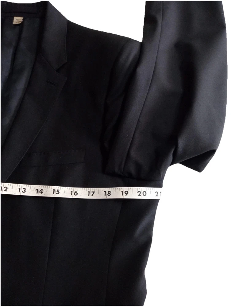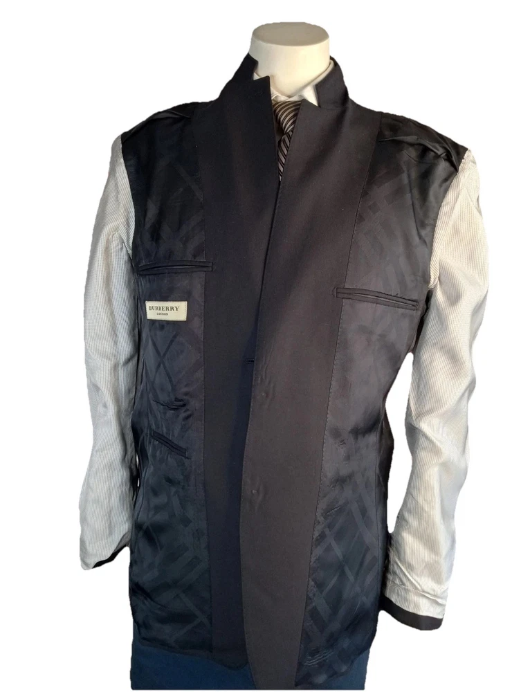 Number of Pieces: 1 Piece Lining Material: Wool Jacket Cut: Single-Breasted Pattern: Solid Brand: Burberry London Personalize: No Jacket Front Button Style: Two-Button MPN: Does Not Apply Style: sport coat Occasion: Casual, Formal Theme: Classic Size: 42 Garment Care: Dry Clean Only gtin13: Does Not Apply Features: Inner Pockets Season: Fall, Winter Department: Men Vintage: No Handmade: No Country/Region of Manufacture: Unknown Material: Wool Jacket/Coat Length: Regular Jacket Vent Style: Single-Vented UPC: Does Not Apply Color: Black Chest Size: 42 Fit: Regular Jacket Lapel Style: Notch Jacket Sleeve Button Style: Four-Button Type: Blazer Size Type: Regular