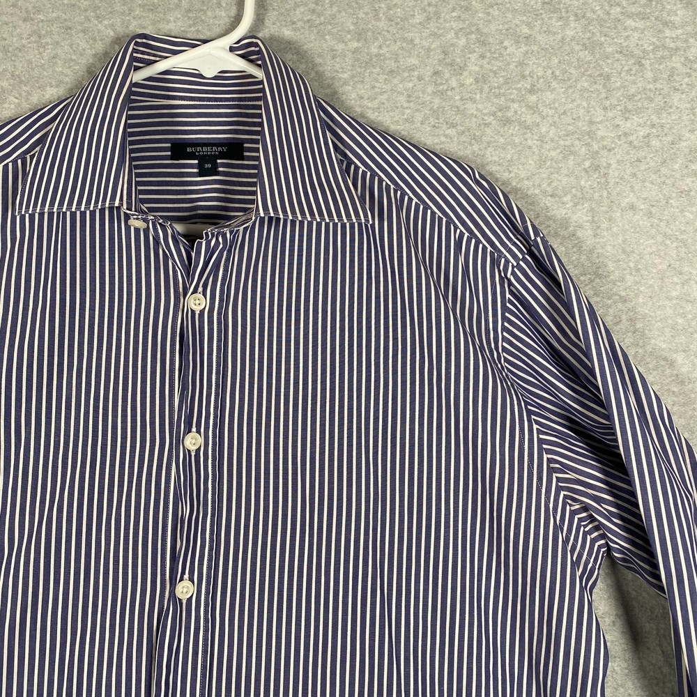 Burberry London Shirt Adult Size 39 Blue White Stripe Long Sleeve Button Up Mens Item: The photos provided depict the actual item you will receive. Any defects or spots will be clearly shown in the photos. Shipping: We offer fast and reliable shipping! All orders will be provided with a tracking number to ensure that your item arrives promptly. Return Policy: 30-day hassle-free returns. See our return policies for details. Feel free to reach out to us through eBay with any questions!