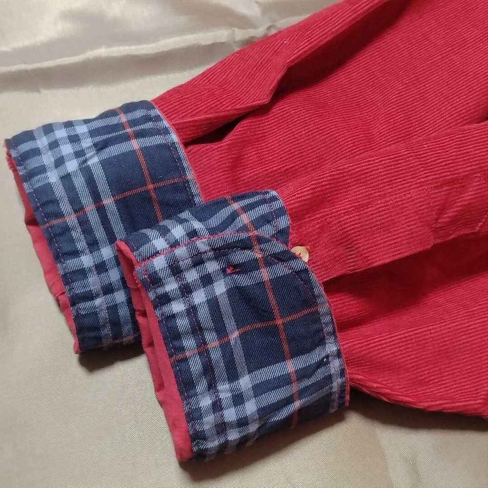 Burberry London Corduroy Shirt Long sleeve Red Nova check Men Size M Used