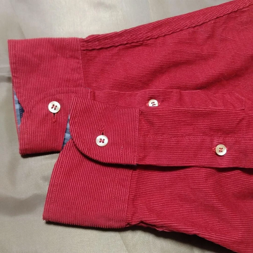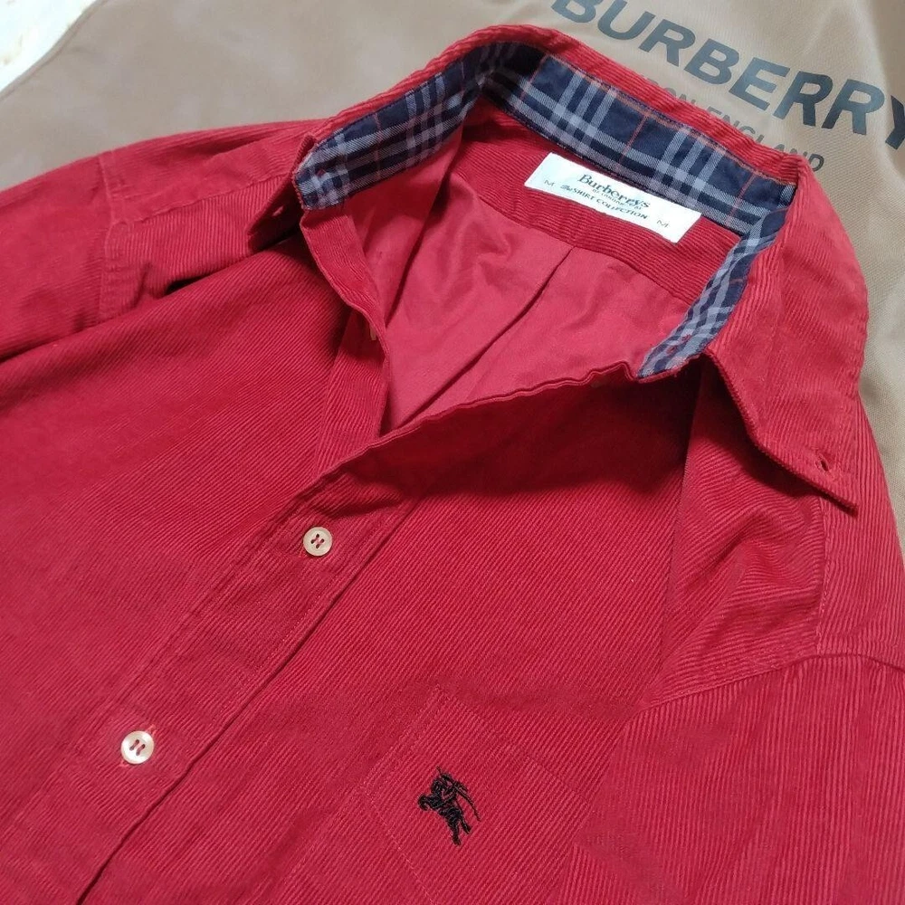 Garment Care: NA gtin13: Does not apply Collar Style: NA Features: Pockets Character: NA Pattern: Check Neckline: Collared Theme: NA Product Line: NA Material: NA Handmade: No Brand: Burberry Size: M Fabric Type: Corduroy UPC: Does not apply Personalize: No Color: Red Department: Men Season: Fall, Spring, Winter Chest Size: 44.8 in Fit: Slim Occasion: Business, Casual, Travel Size Type: Regular Closure: Button Model: NA MPN: NA Vintage: No Accents: Button Type: Button-Up Sleeve Length: Long Sleeve