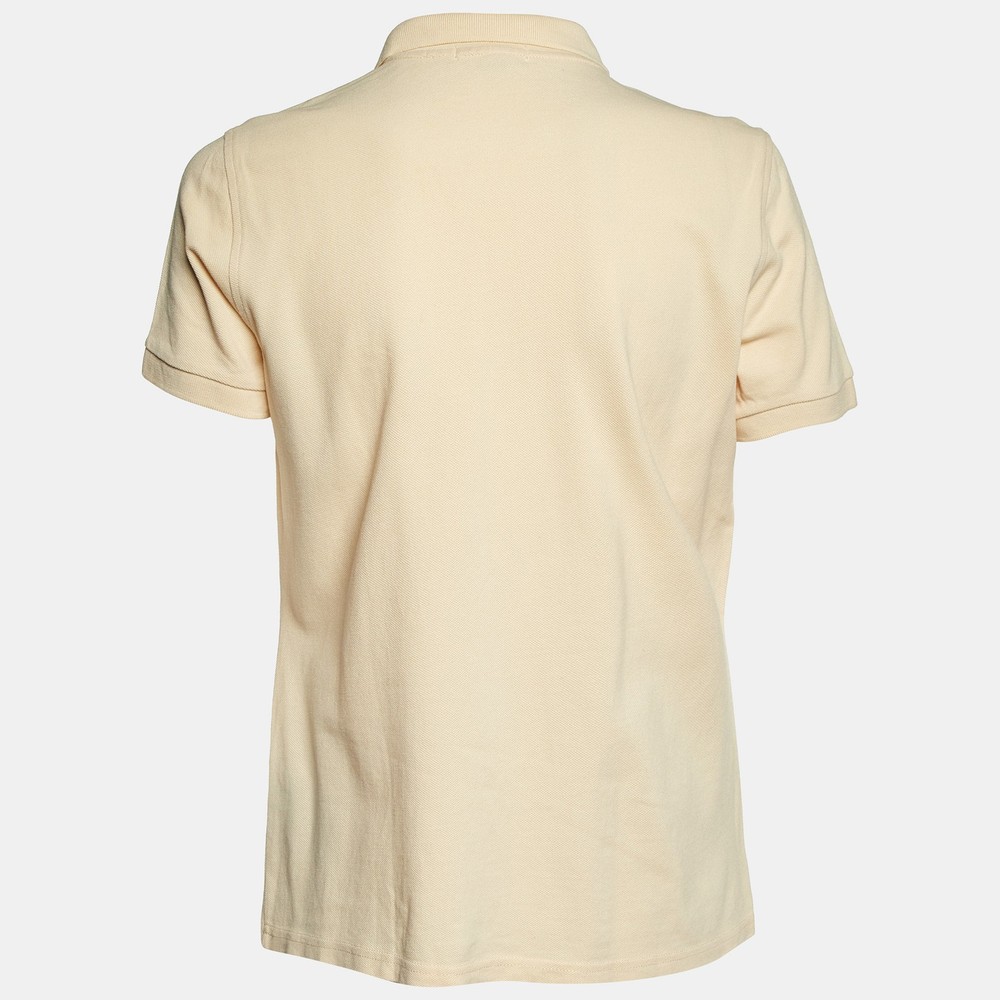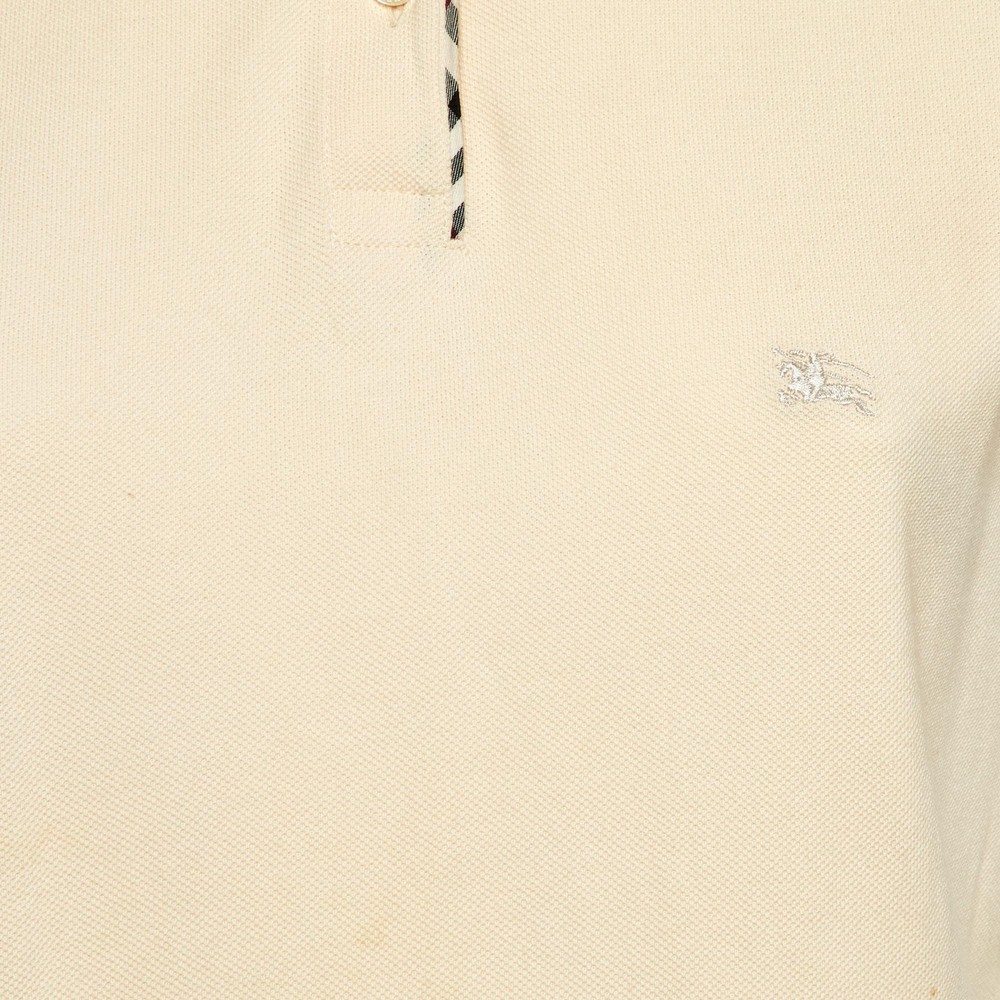 This Burberry London polo t shirt is crafted from soft cream cotton pique, offering a lightweight and breathable feel for all day comfort. The classic design features a buttoned placket and a subtly embroidered Burberry logo, adding a touch of refined sophistication.Certified by The Luxury Closet - This item has gone through a detailed authentication process overseen by our experts. We offer a lifetime guarantee of authenticity on all our items. Import duties, taxes and charges are not included in the item price. These charges are the buyers responsibility. Please check with your country’s customs office to determine what these additional cost will be prior to buying. Our eBay Store About Us Contact Us Add to Favorite Sellers Burberry London Cream Cotton Pique Polo T-Shirt L $135.3 This Burberry London polo t shirt is crafted from soft cream cotton pique, offering a lightweight and breathable feel for all day comfort. The classic design features a buttoned placket and a subtly embroidered Burberry logo, adding a touch of refined sophistication. Product Details Brand Color Cream Dimensions Material Cotton Knit Size L Outsole Width Outsole Length Heel Height Includes The Luxury Closet Packaging Certified by The Luxury Closet This item has gone through a detailed authentication process overseen by our experts. We offer a lifetime guarantee of authenticity on all our items. How We Check The in-house team of experts at The Luxury Closet is highly trained to verify the authenticity and the condition of the luxury products. They ensure that only 100% authentic items are put on sale.The evaluation process is unique with its own mix of assessment criteria and differs according to the category. Each item is evaluated based on the following combination of hallmarks, hardware, stitching, symmetry, material, craftsmanship, stamping, codes, hologram stickers, and packaging. Our authenticators also check if the items have been modified or amended (e.g., aftermarket diamonds, replaced batteries, repaired bags, etc.) International Buyers Import duties, taxes and charges are not included in the item price. These charges are the buyers responsibility. Please check with your country’s customs office to determine what these additional cost will be prior to buying.