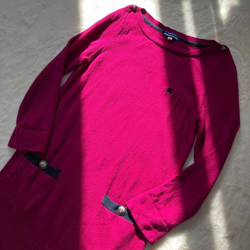 Burberry London Knit Sweater Pink Long Sleeve Cotton Wool Women Size 38 Used