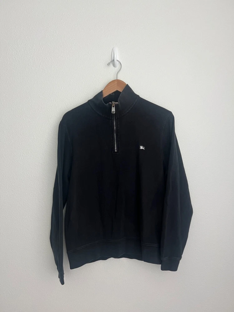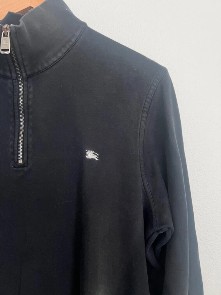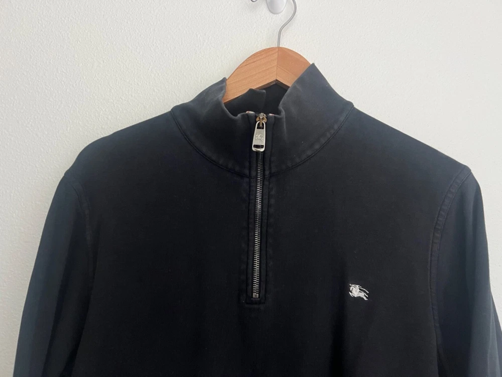 Burberry London Mens Cotton Quarter Zip Pullover Jacket Size Large Black