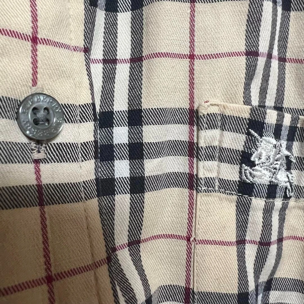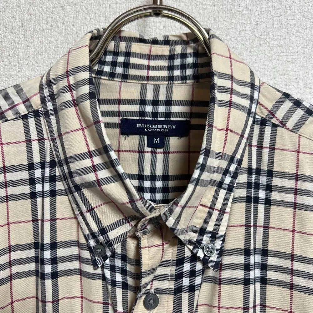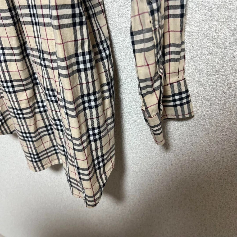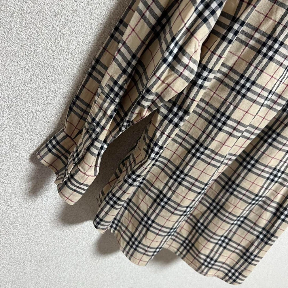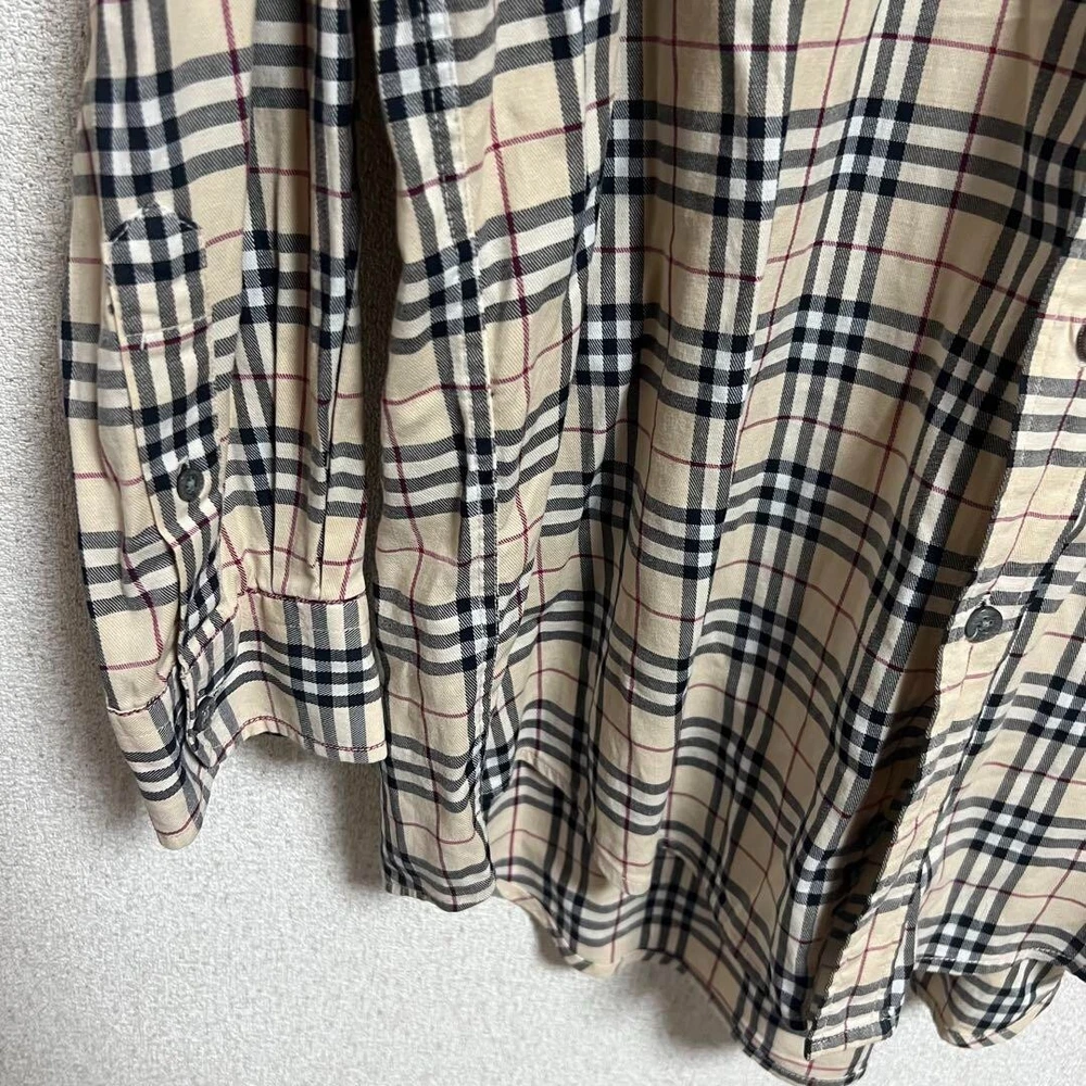 Burberry London Nova Check Long Sleeve Shirt Cotton Beige Men Size M Used