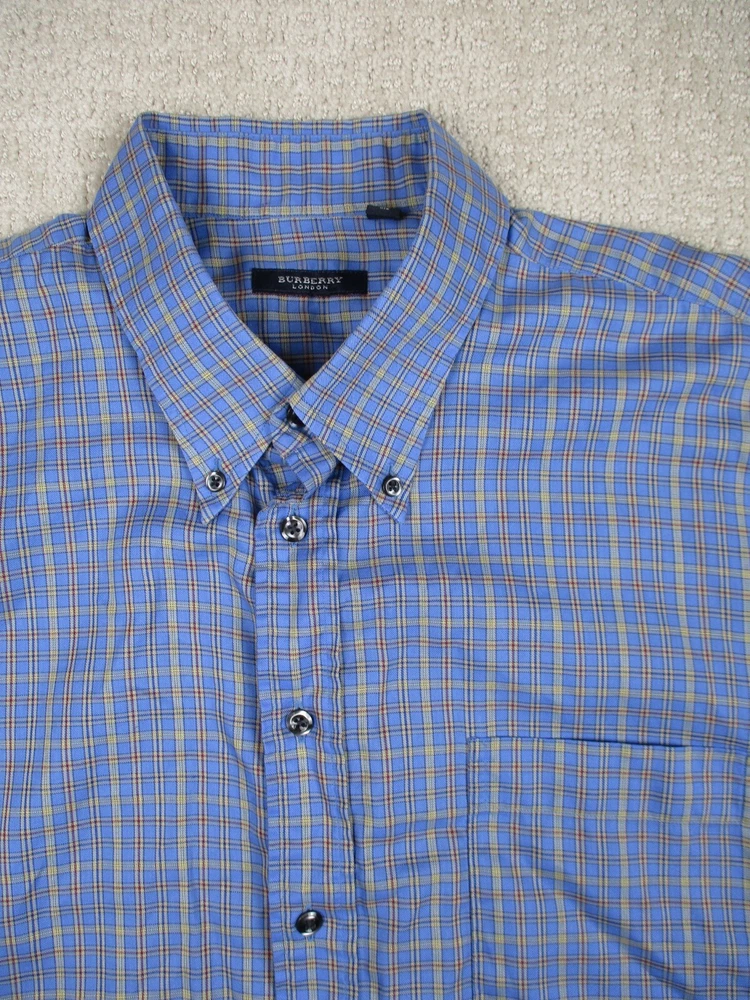 Burberry London Novacheck Blue Plaid Shirt Men's XL Long Sleeve Button Up USA