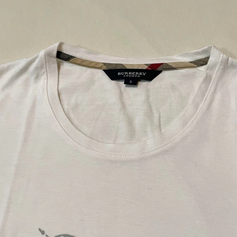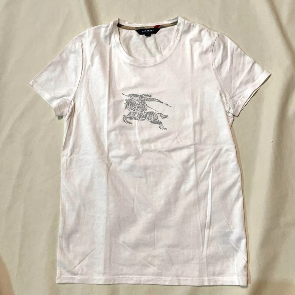 Burberry London Short Sleeve T-Shirt Horse Logo Print White Women Size 2 Used