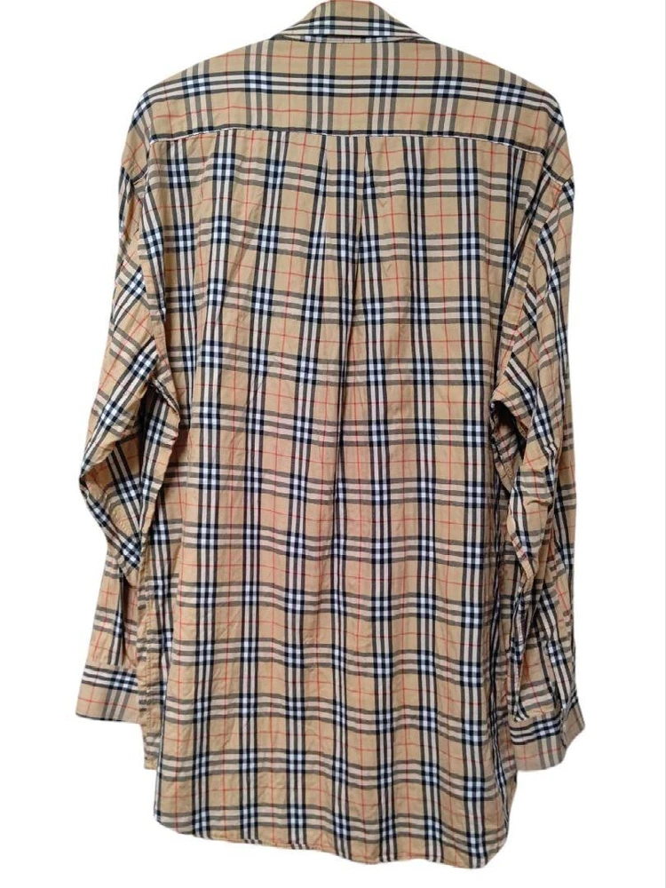 Burberry Long sleeve Shirt Nova Check Beige Logo 100% Cotton Men Size 41/L Used