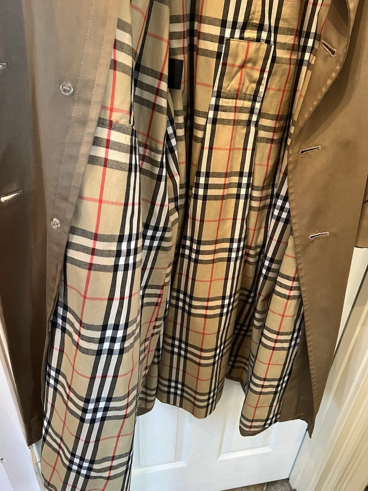 Elevate your style with this Burberry men's trench coat in a classic beige color. Crafted with high-quality polyester, this coat is perfect for any occasion and is a must-have for any fashion-forward man. The coat features a regular size fit, making it perfect for everyday wear. The Burberry brand is known for its timeless designs, and this trench coat is no exception. It boasts a stylish and versatile design that can be dressed up or down. Ideal for any season, this coat is perfect for men who want to stay fashionable and comfortable. Add this Burberry men's trench coat to your wardrobe today!